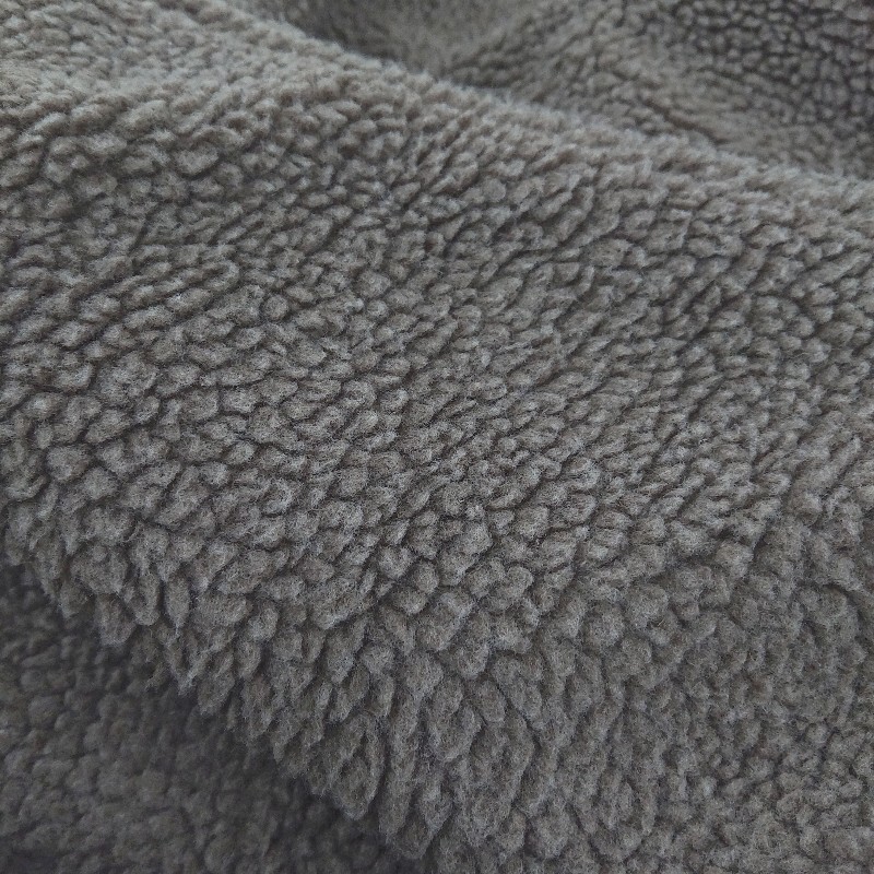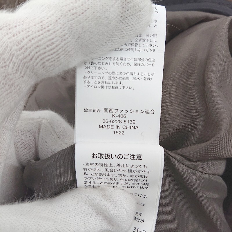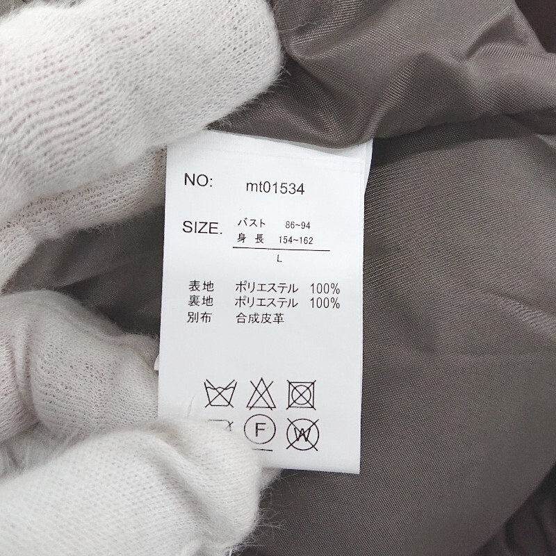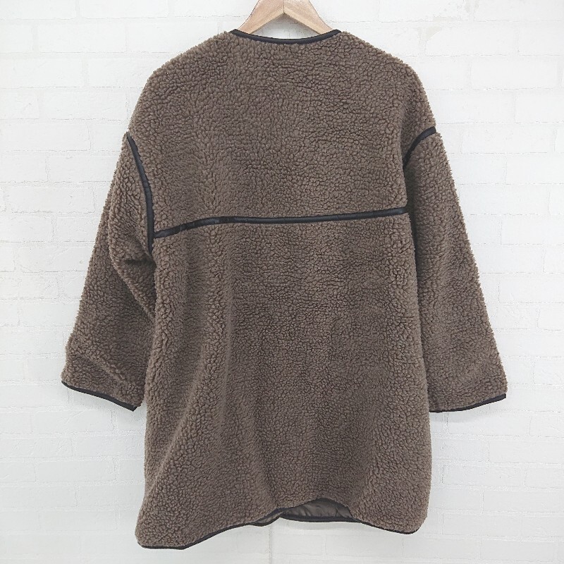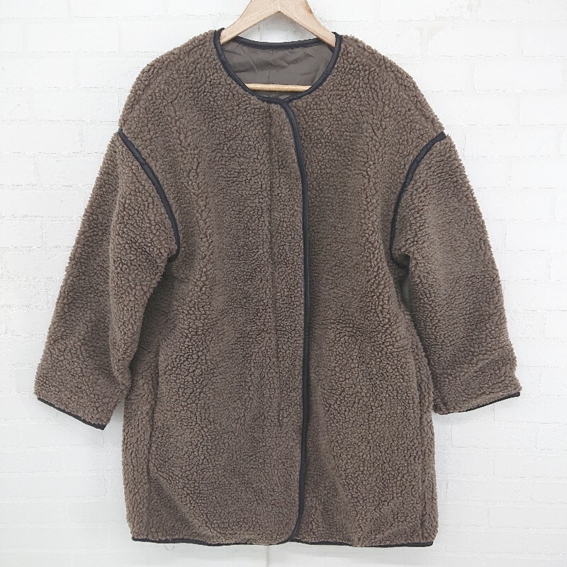 ■ moment+ ボア もこもこ パイピング 長袖 ジップアップ ノーカラー ジャケット サイズL ブラウン レディース E
