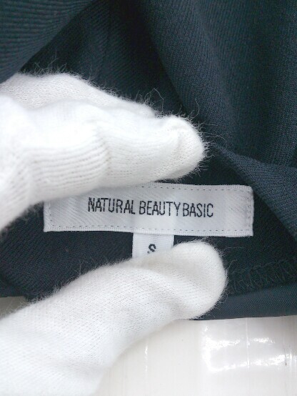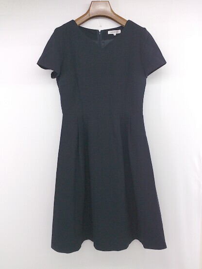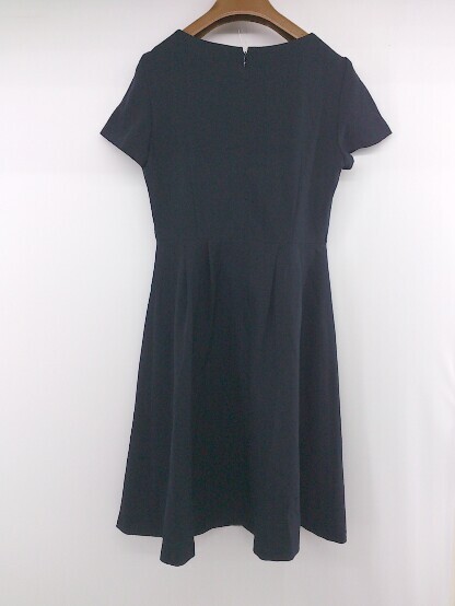 ◇ NATURAL BEAUTY BASIC ハートシェイプネック フォーマル 半袖 膝丈 ワンピース サイズS ネイビー系 レディース E