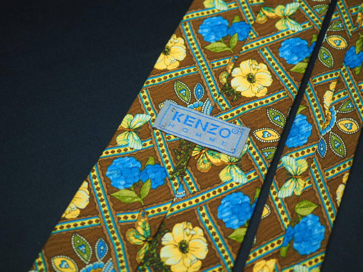 美品【KENZO ケンゾー】 E2044 ブラウン系 SILK ブランド ネクタイ 古着 良品