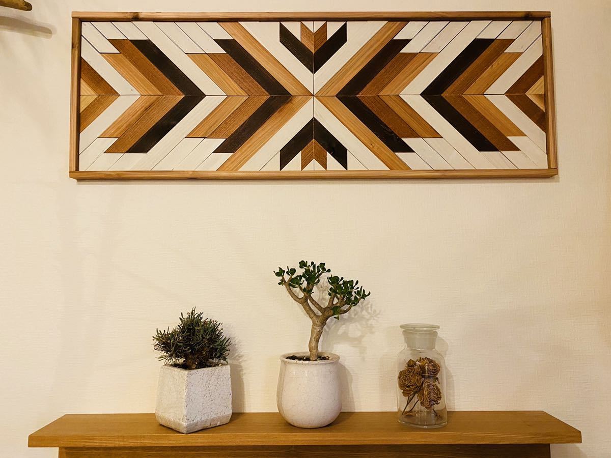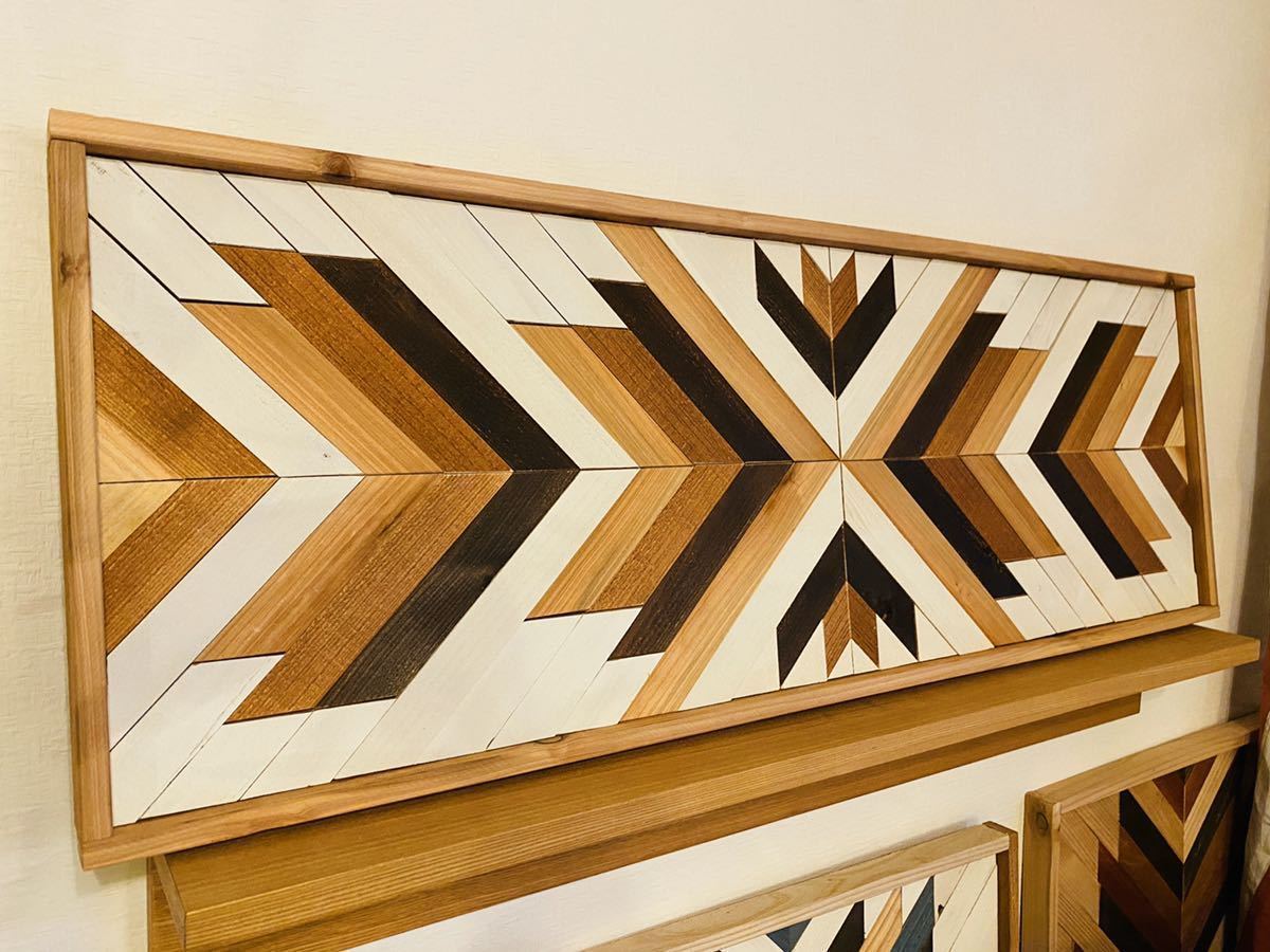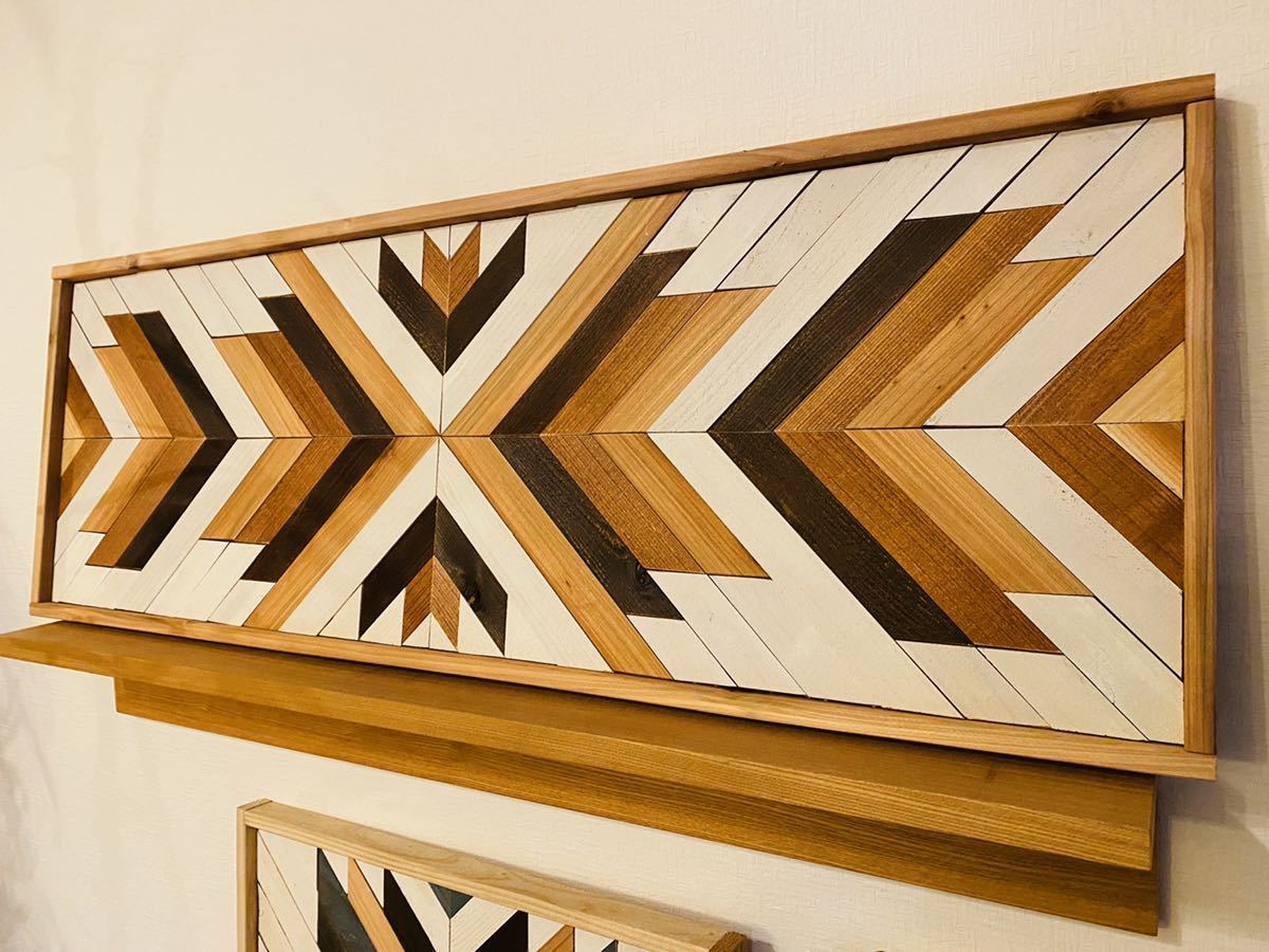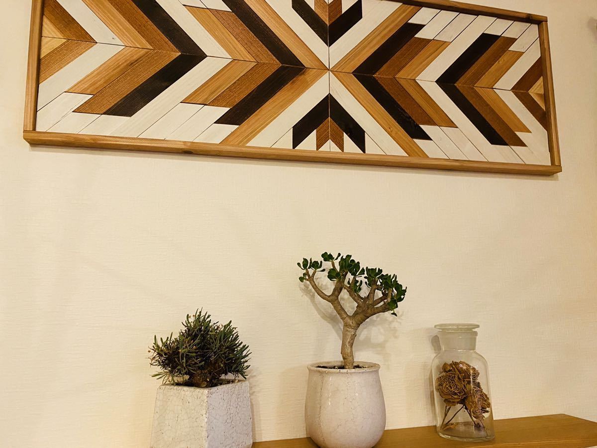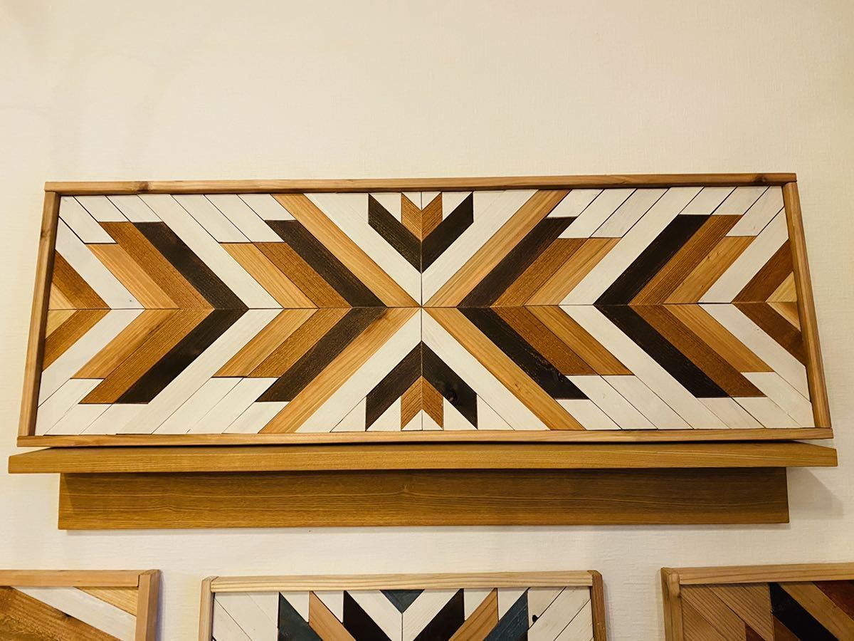 天然木材で寄木細工されたタペストリーはすべて一点物。サイズも大きめなので、存在感のあるインテリアとしてオススメです。