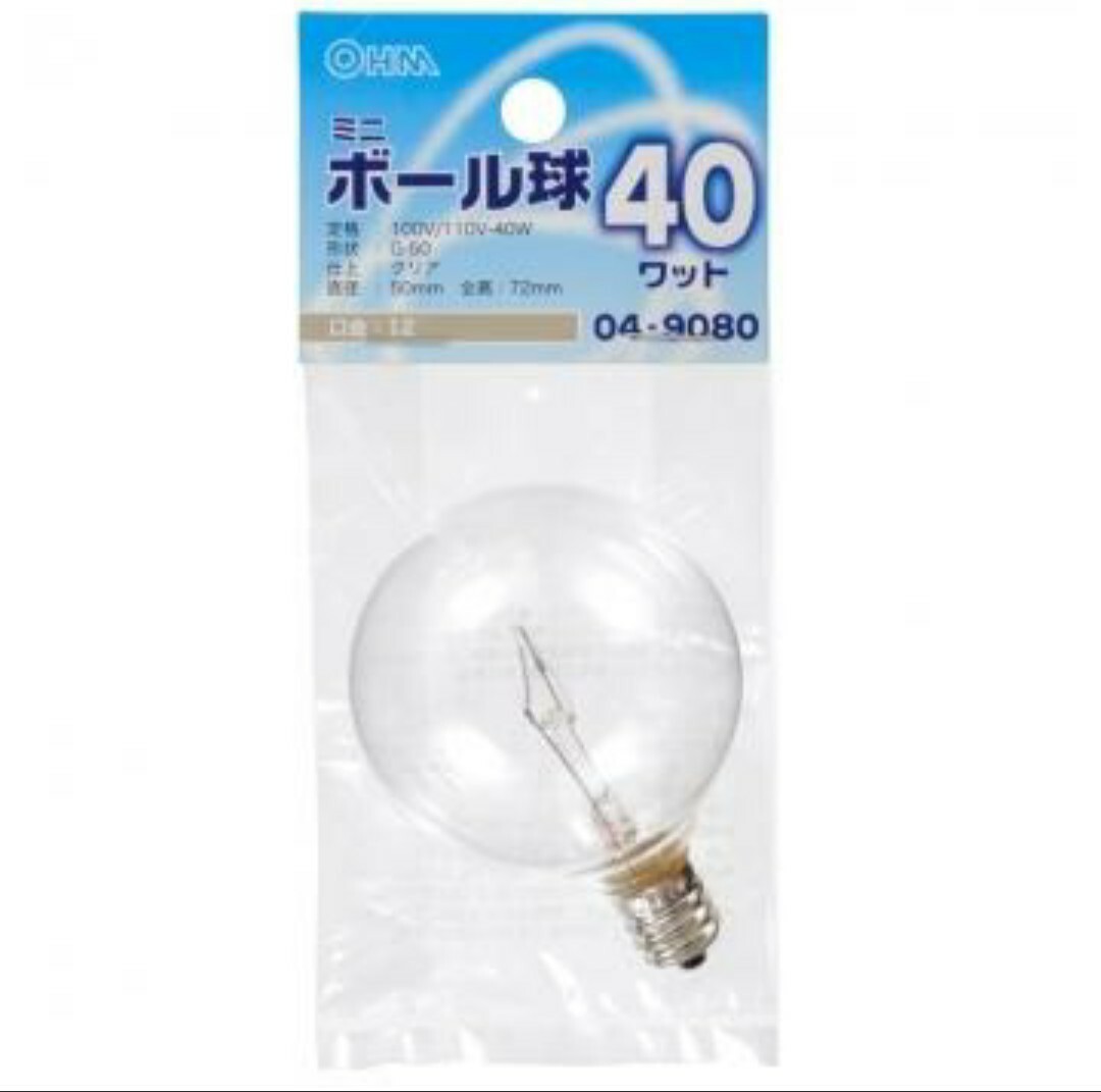 OHM ミニボール球 40W 2個 未使用品になります。下記の仕様をご確認下さい。