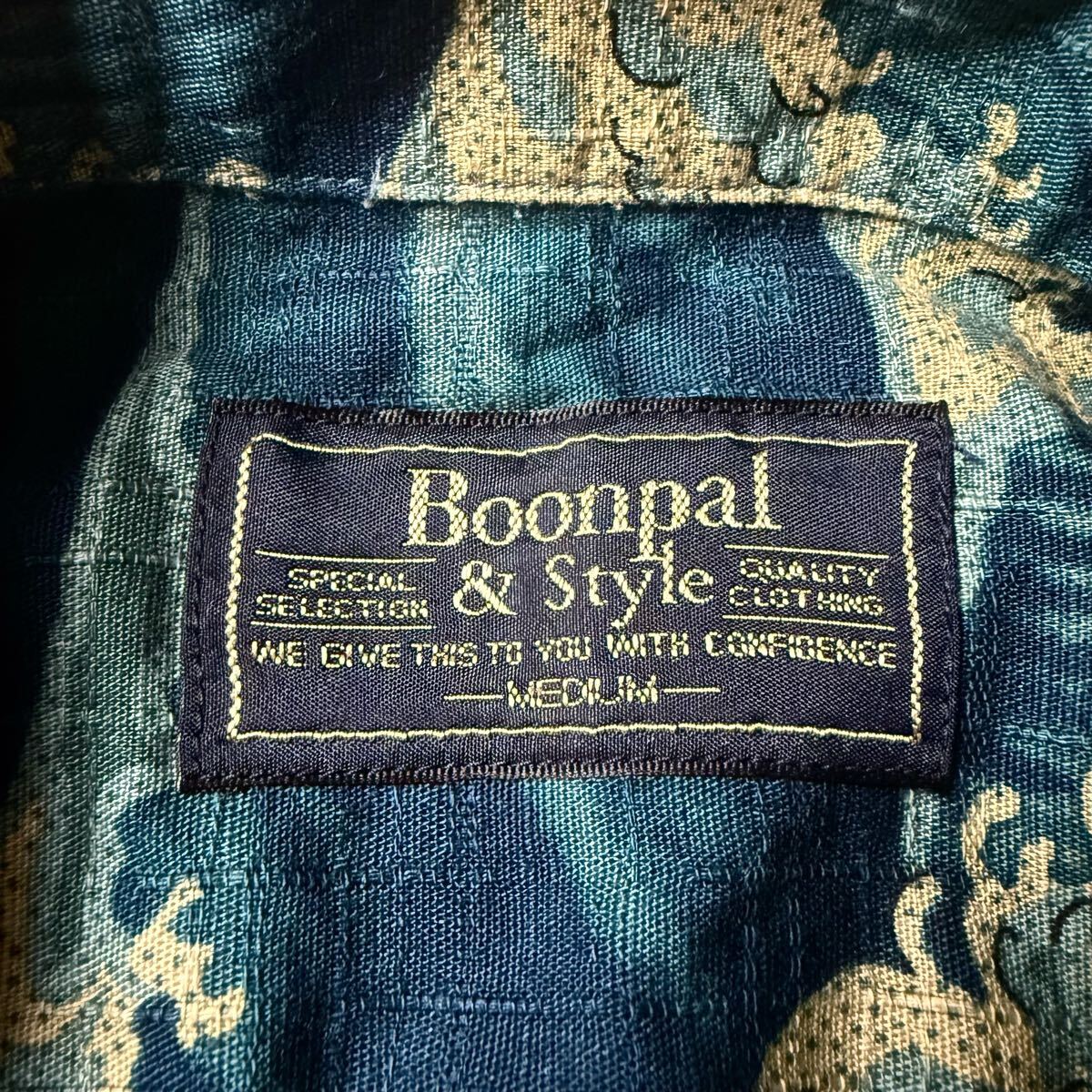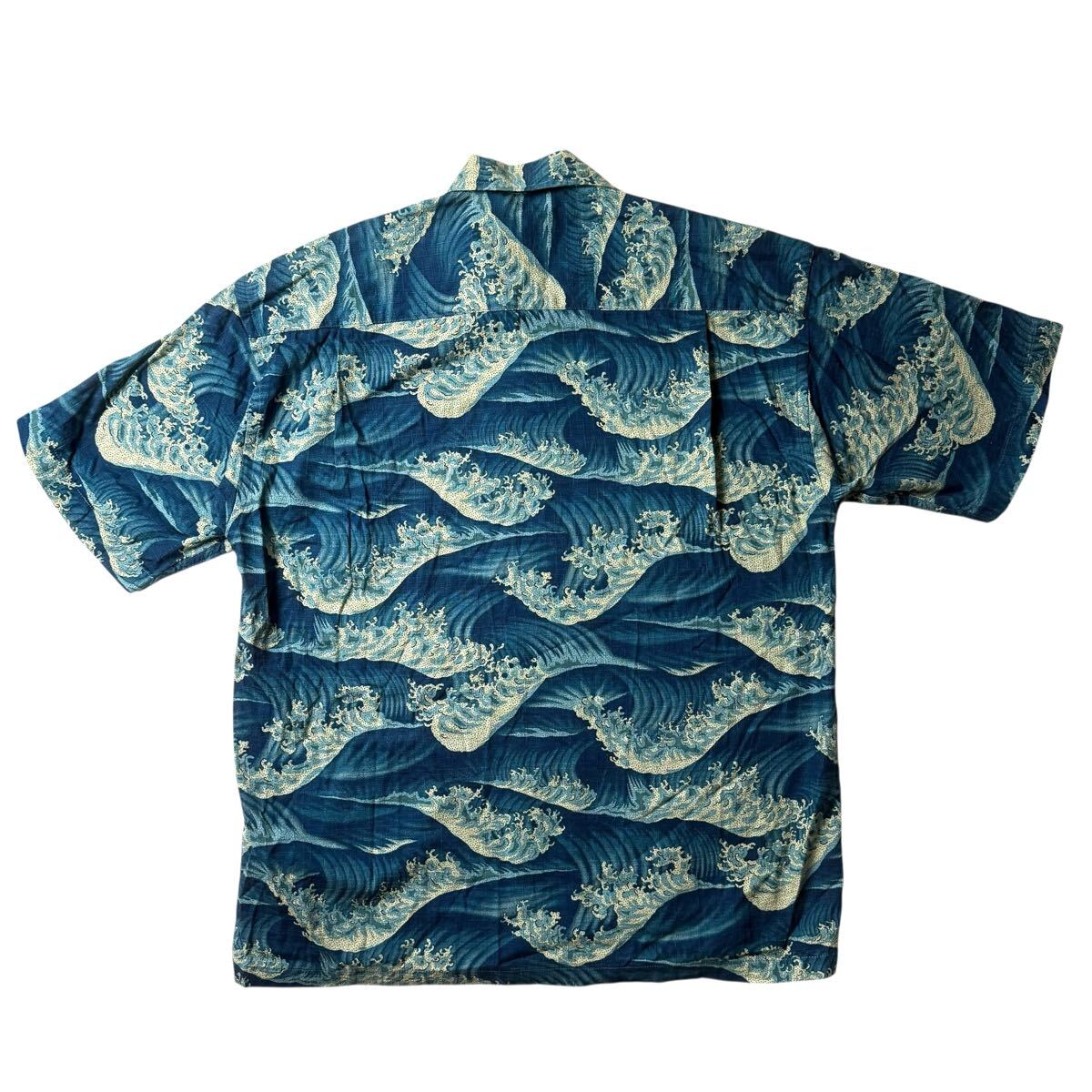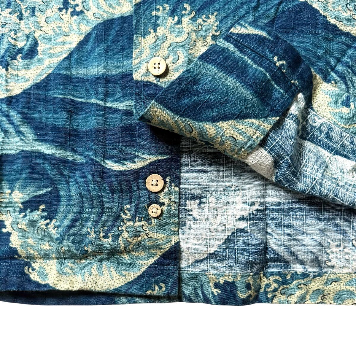 極美品 Boonpal & style ブーンパル 半袖 開襟 アロハシャツ オープンカラー シャツ 荒波 海 総柄 青 ブルー トップス サイズ M