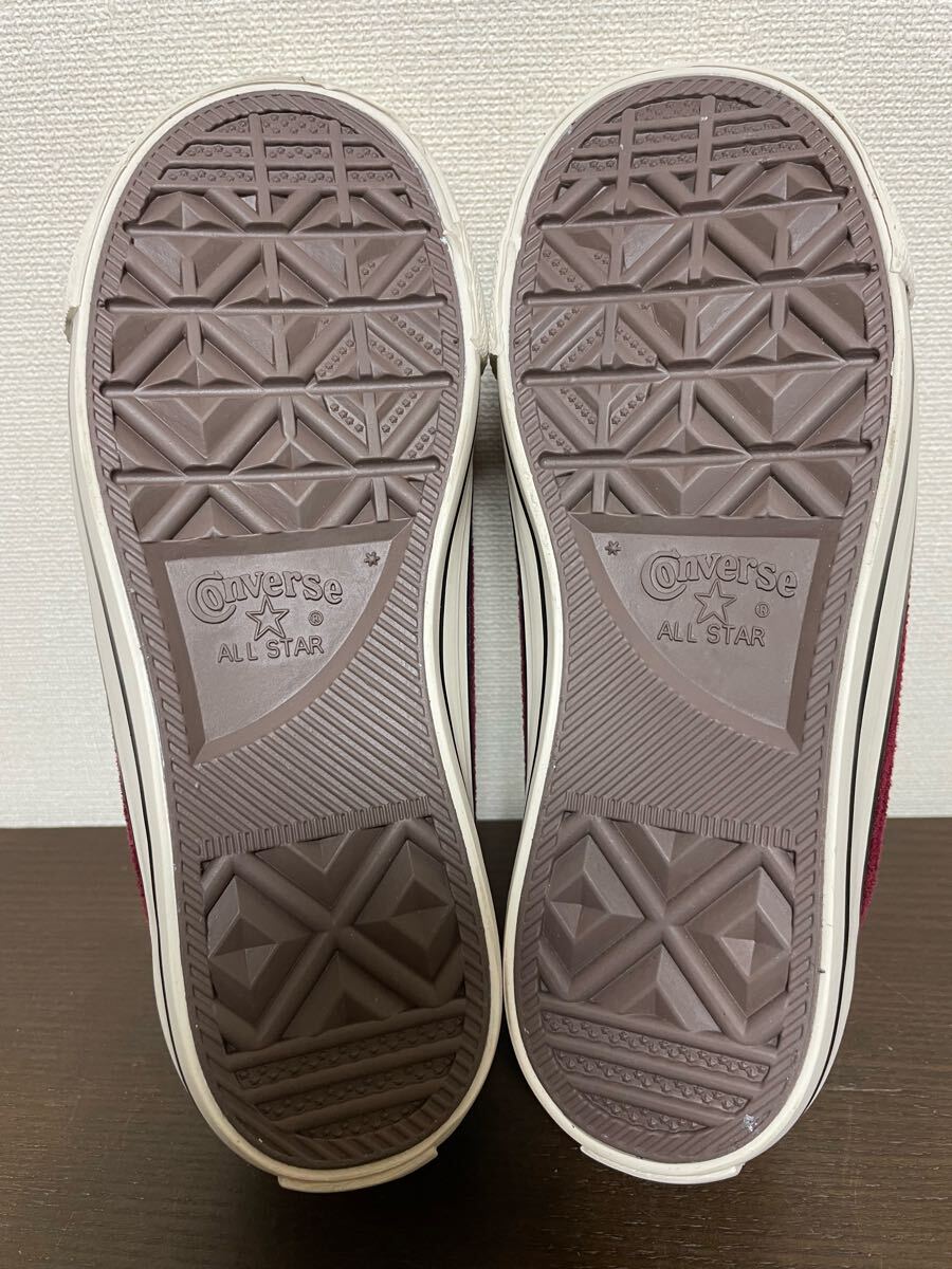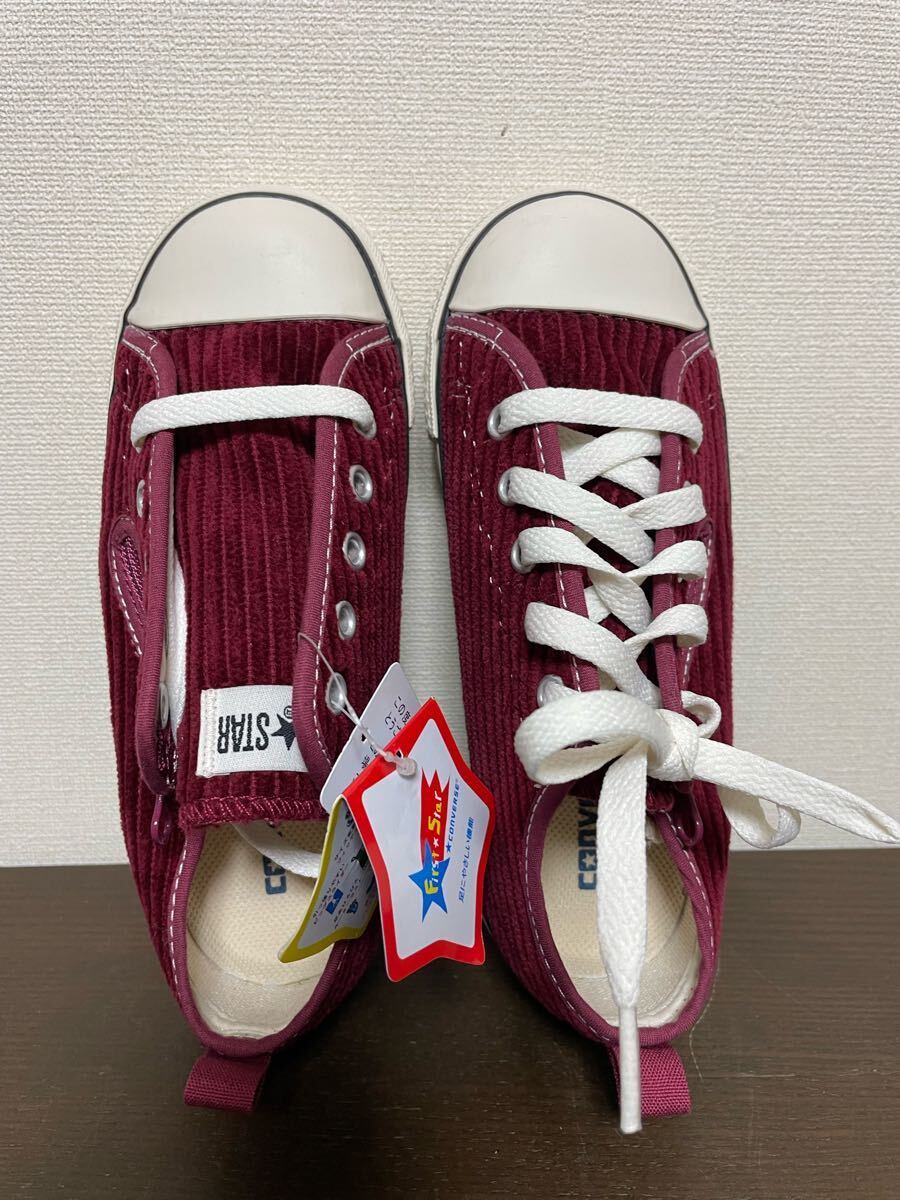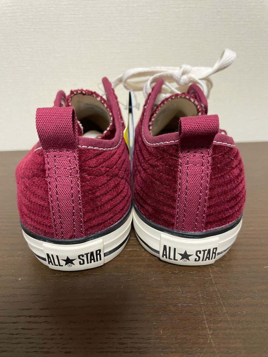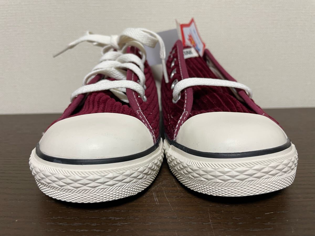 コーデュロイ素材のバーガンディカラーのスニーカーです。