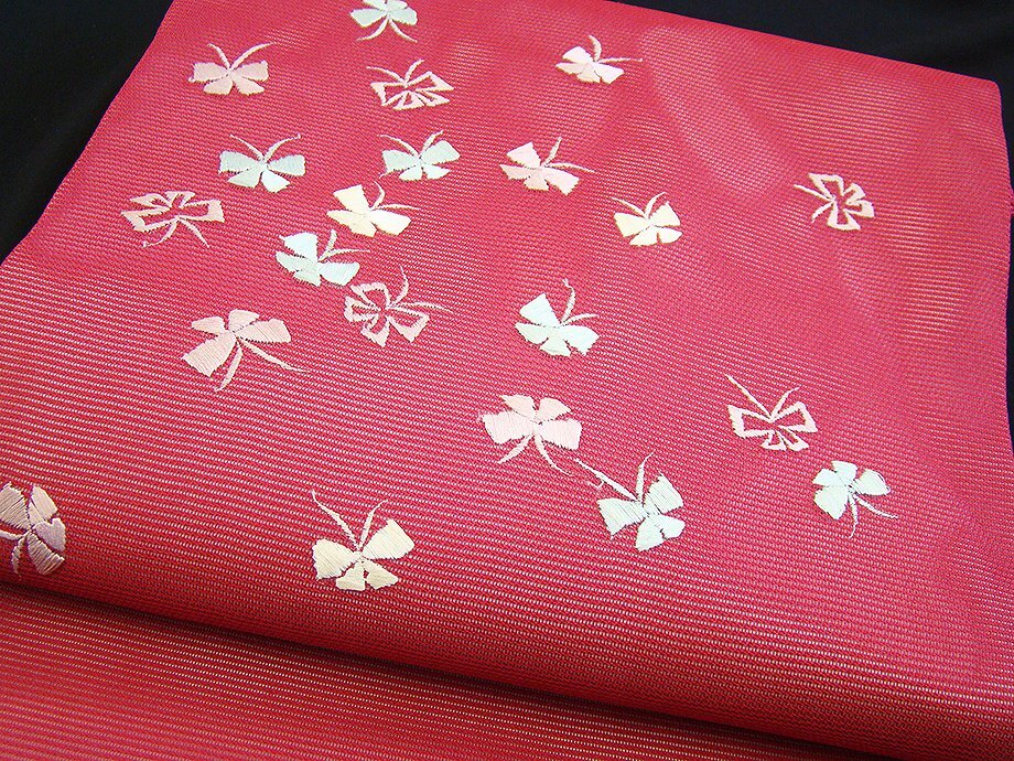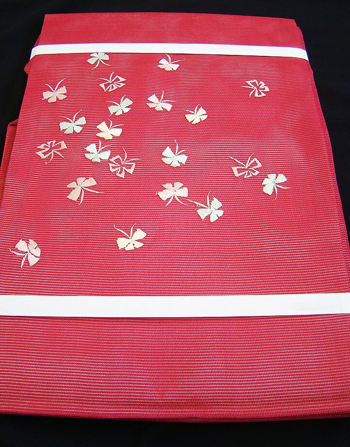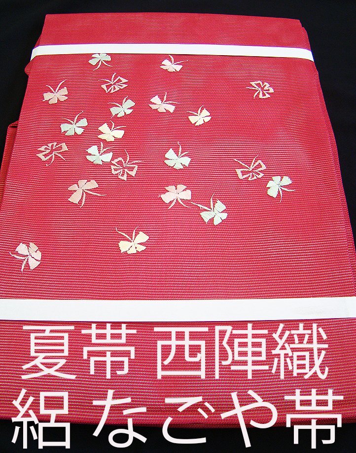 | 商品説明 | とてもしなやかなさらっとした手触り良い扱い易く〆易い「絽」の西陣織のなごや帯。 赤色地に蝶柄の織柄。 たいこ柄。 |