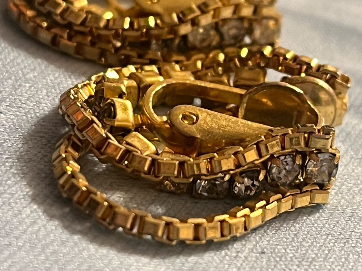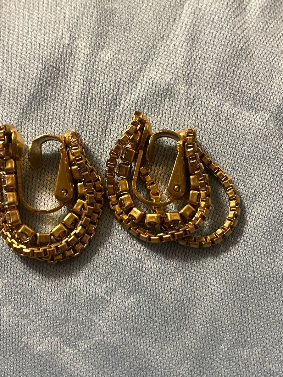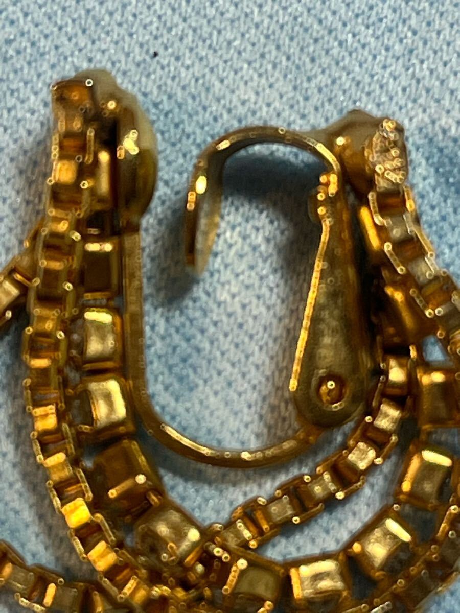 イヤリング  ゴールド チェーン  クリップイヤリング  ゴールド  ラインストーン ゴールドのチェーンデザインにクリスタルストーン