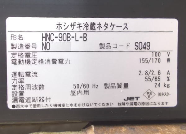 ホシザキ 2023年 冷蔵ネタケース HNC-90B-L-B 900×350×280 未使用厨房/25E1201Z