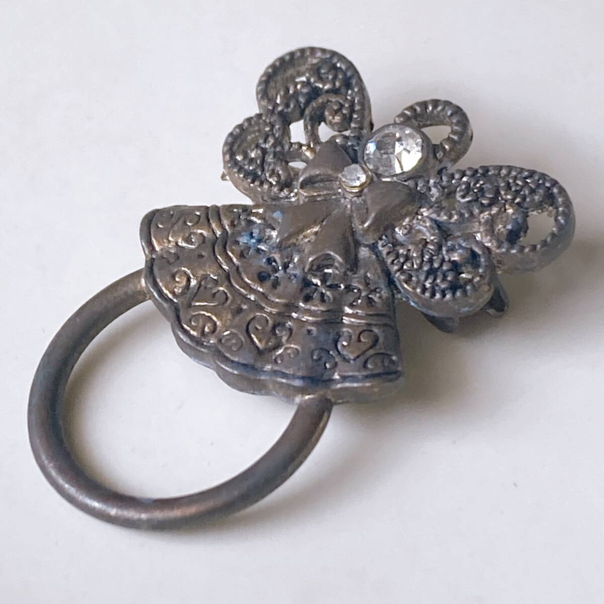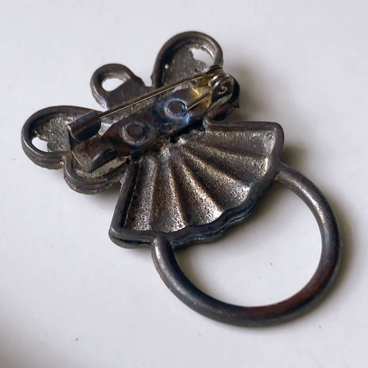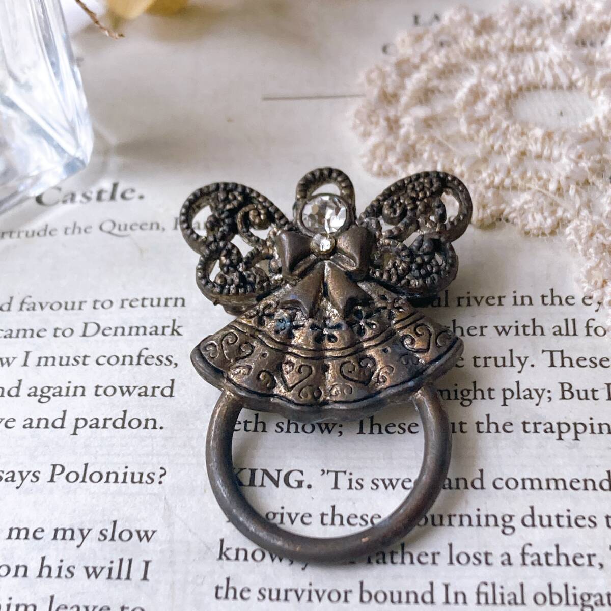 アンティークブローチ 金古美 リボン レース ガラス キラキラストーン ヴィンテージ☆vintage jewelry accessoriesR0545