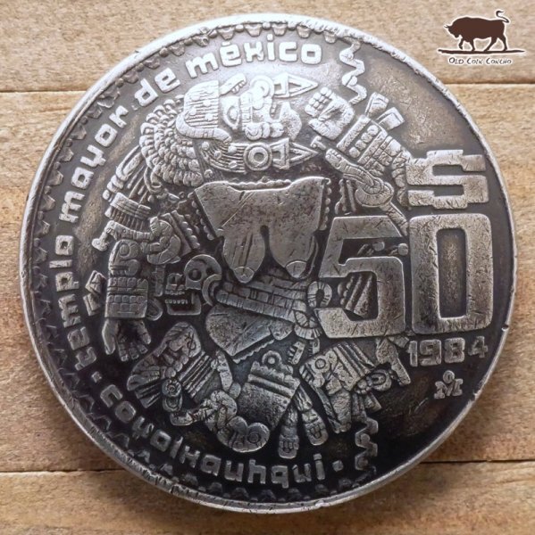 ◎コンチョ ネジ式 メキシコ 50ペソ 女神 コヨルシャウキ 35mm コイン ボタン パーツ