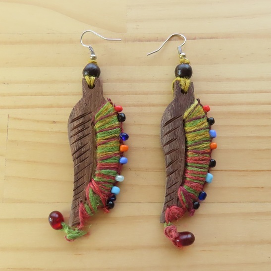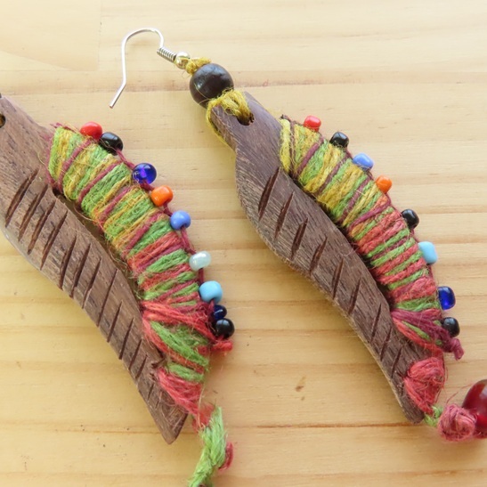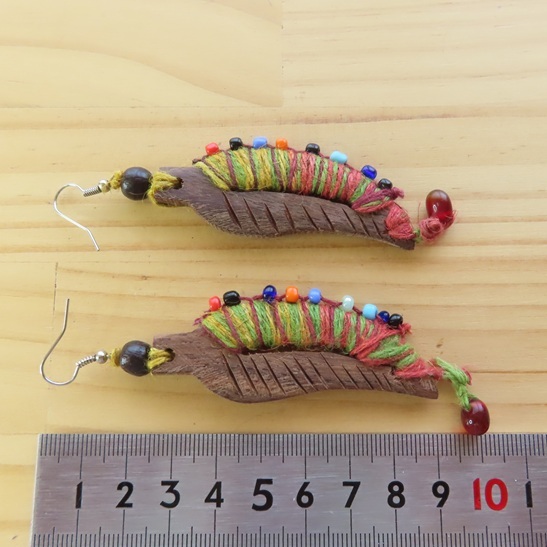 〓 新品 〓 ウッド&ヘンプ ピアス 〓 リーフ 葉 ビーズ 木 麻 エスニック アジアン 民族 ウッド ヘンプ おしゃれ 〓AJ342