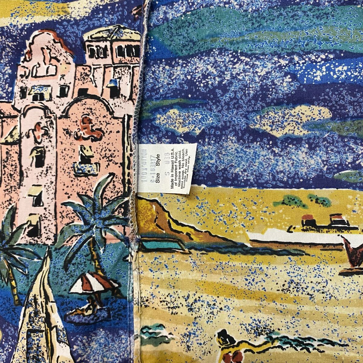 KAHALA カハラ 洋柄 アロハシャツ ハワイアンシャツ アビキライアティ・デザイン 半袖 ノーマル襟 コットン100% ハワイ製 ハワイの風景 S