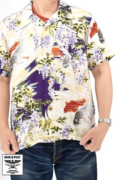 日本で初めてオリジナルのフライトジャケットを生み出し、その後も数々の国内製ミリタリー商品を製造する「ヒューストン」から、レーヨンアロハシャツ「鯉」(41200)のご紹介です。