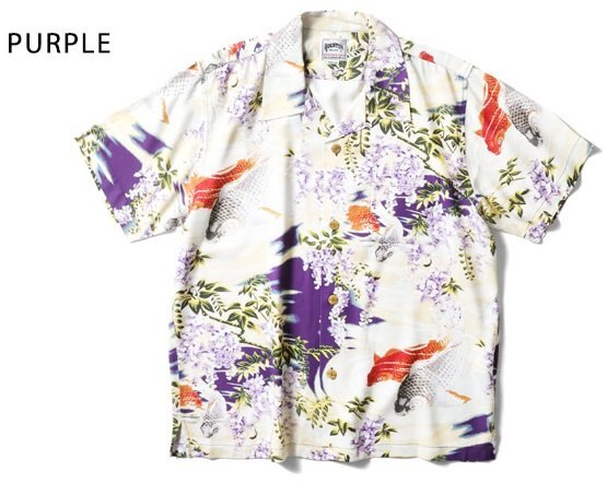 レーヨンアロハシャツ「鯉」◆HOUSTON パープル XXLサイズ 41200 ヒューストン 和柄 和風 ハワイアン コイ