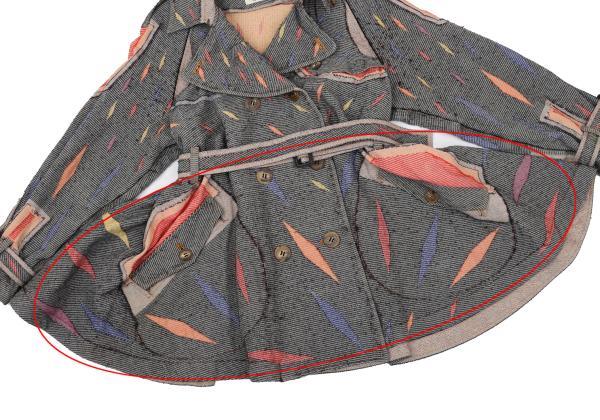 実寸 | 身幅脇下: 60cm 着丈(前/後): 78cm ベント(無し/サイド/センター): 無し 裏地(総裏地/背抜き): 無し ウエスト(~cm伸ばせます): 64~70cm 裾幅: 120cm ヒップ: 130cm スカート丈: 57cm 裄丈: 80cm 袖丈(脇下~袖口): 47cm |