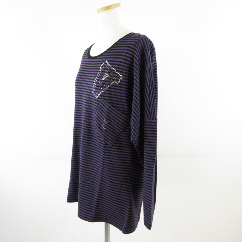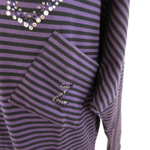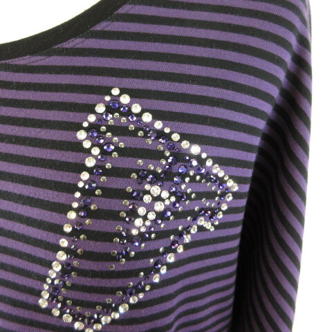 バレンザ VALENZA カットソー 長袖 ボーダー ラインストーン 紫 40 *T377 レディース