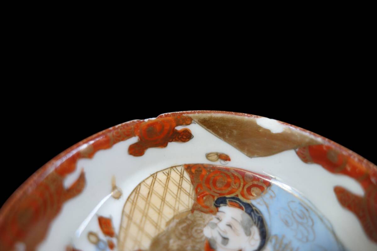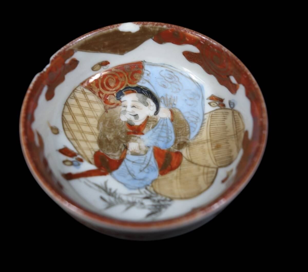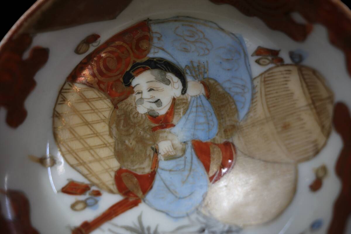 明治〜昭和初期ビンテージ 九谷焼 色絵金彩盃 お猪口 酒器 大黒天