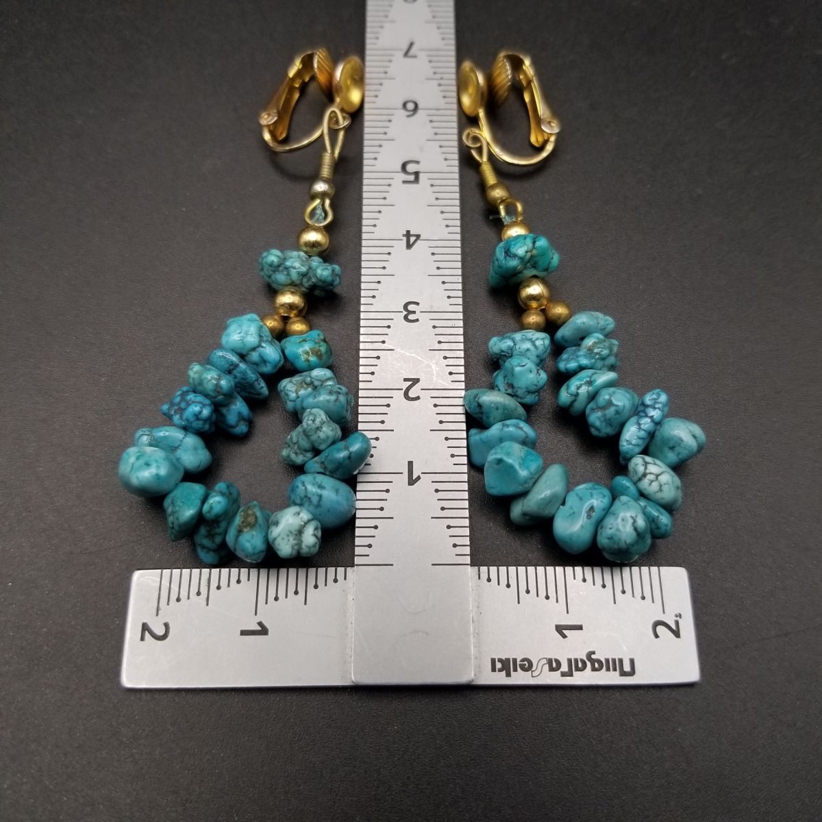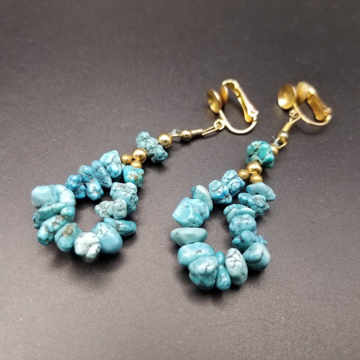 ターコイズ ビーズ フープ ヴィンテージ イヤリング エスニック調 大ぶり 存在感 ボヘミアン R15-N