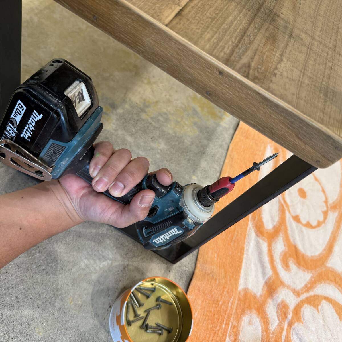 安全にご利用いただきたいので、アイアン脚のビス穴全箇所打ち込んで下さい。