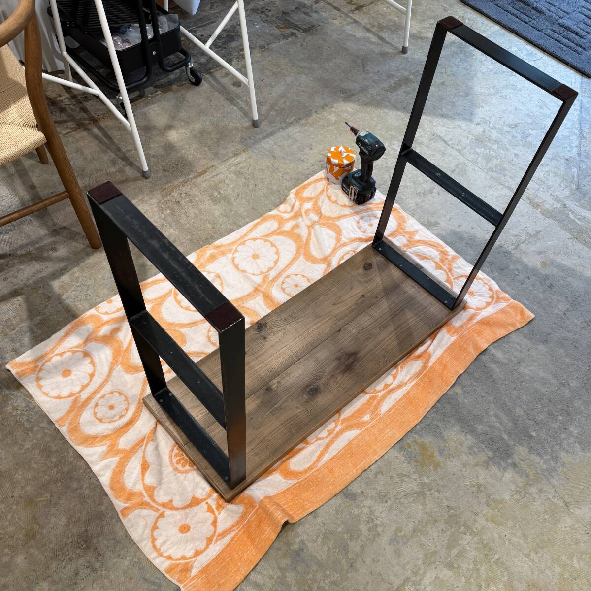 ・アイアン脚も古材板の風合いに合わせ無骨な無塗装、溶接痕もそのままで仕上げております。