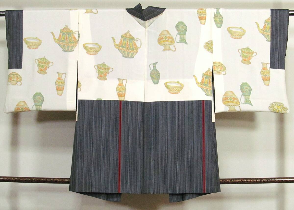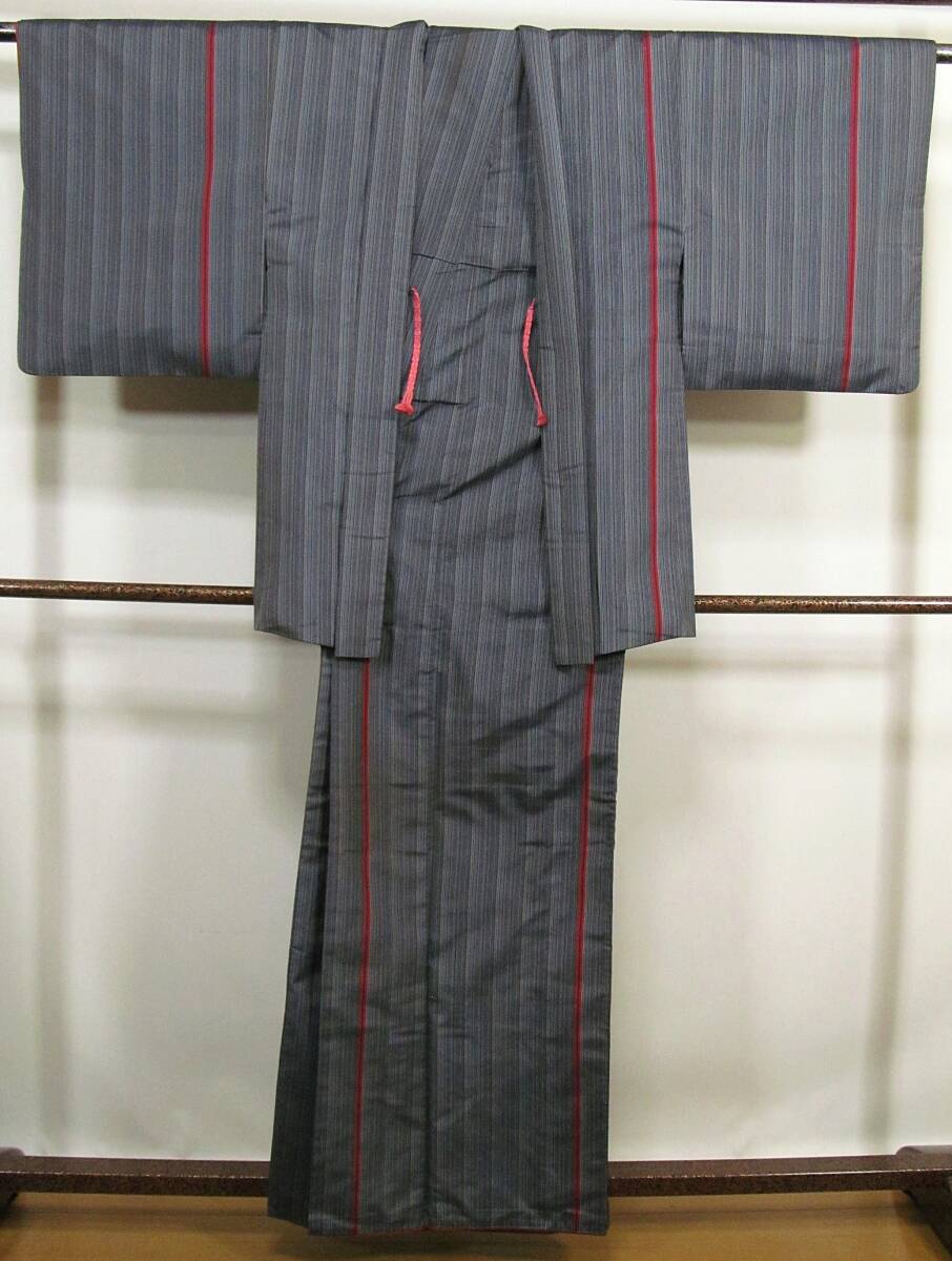 ね136 正絹 アンサンブル 縦縞柄 身丈160cm