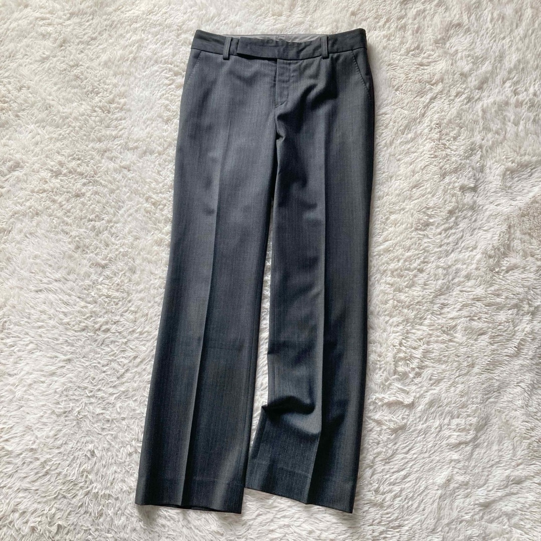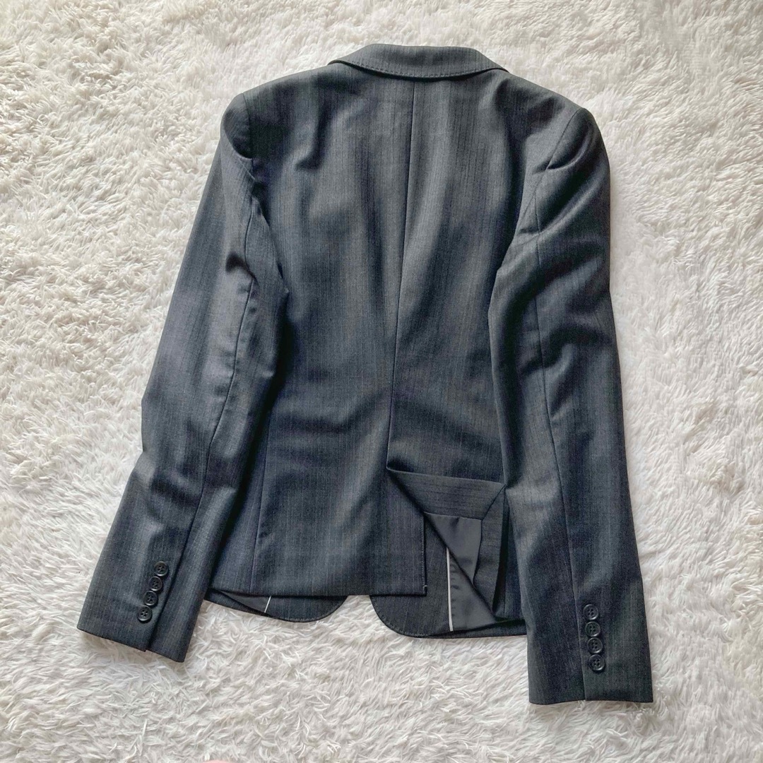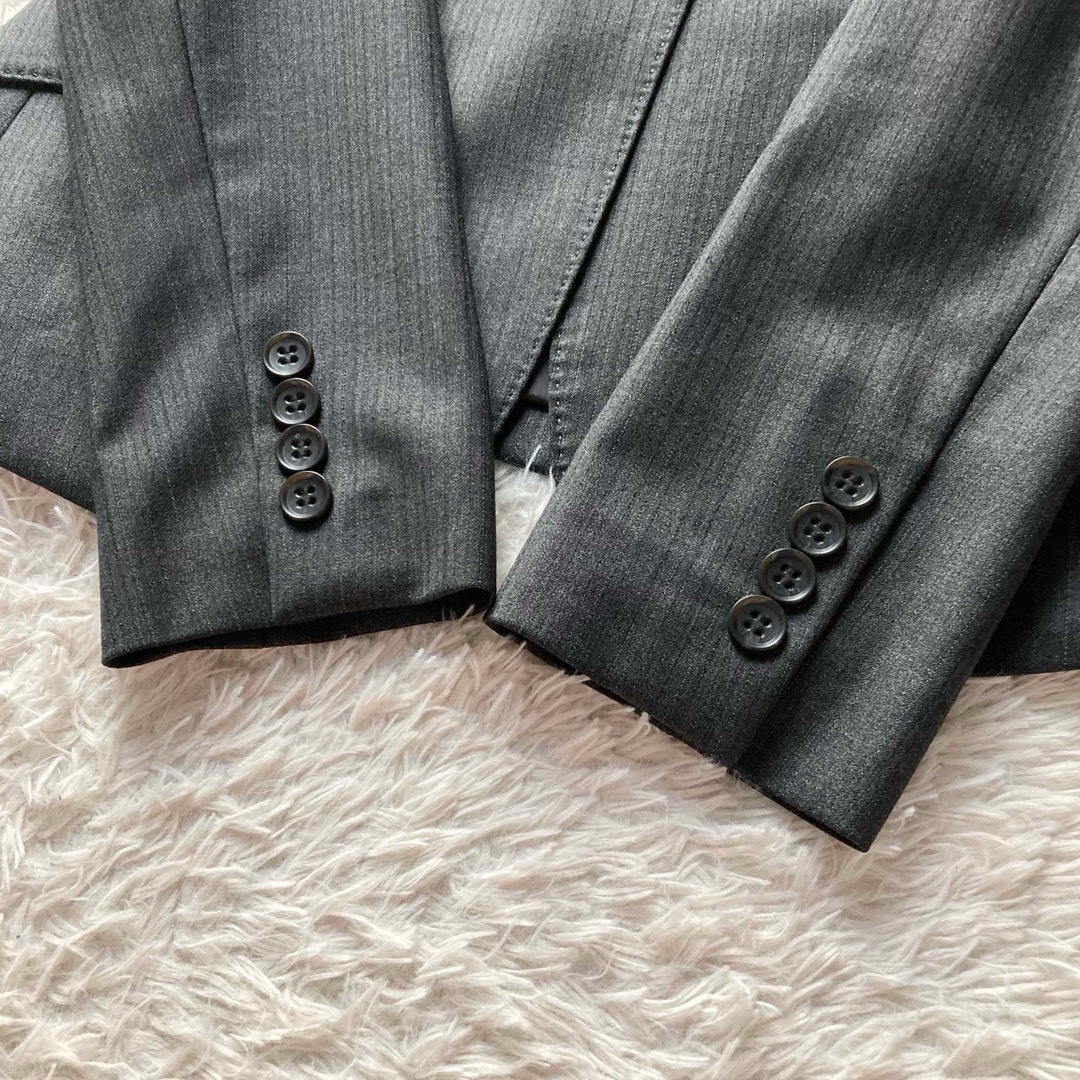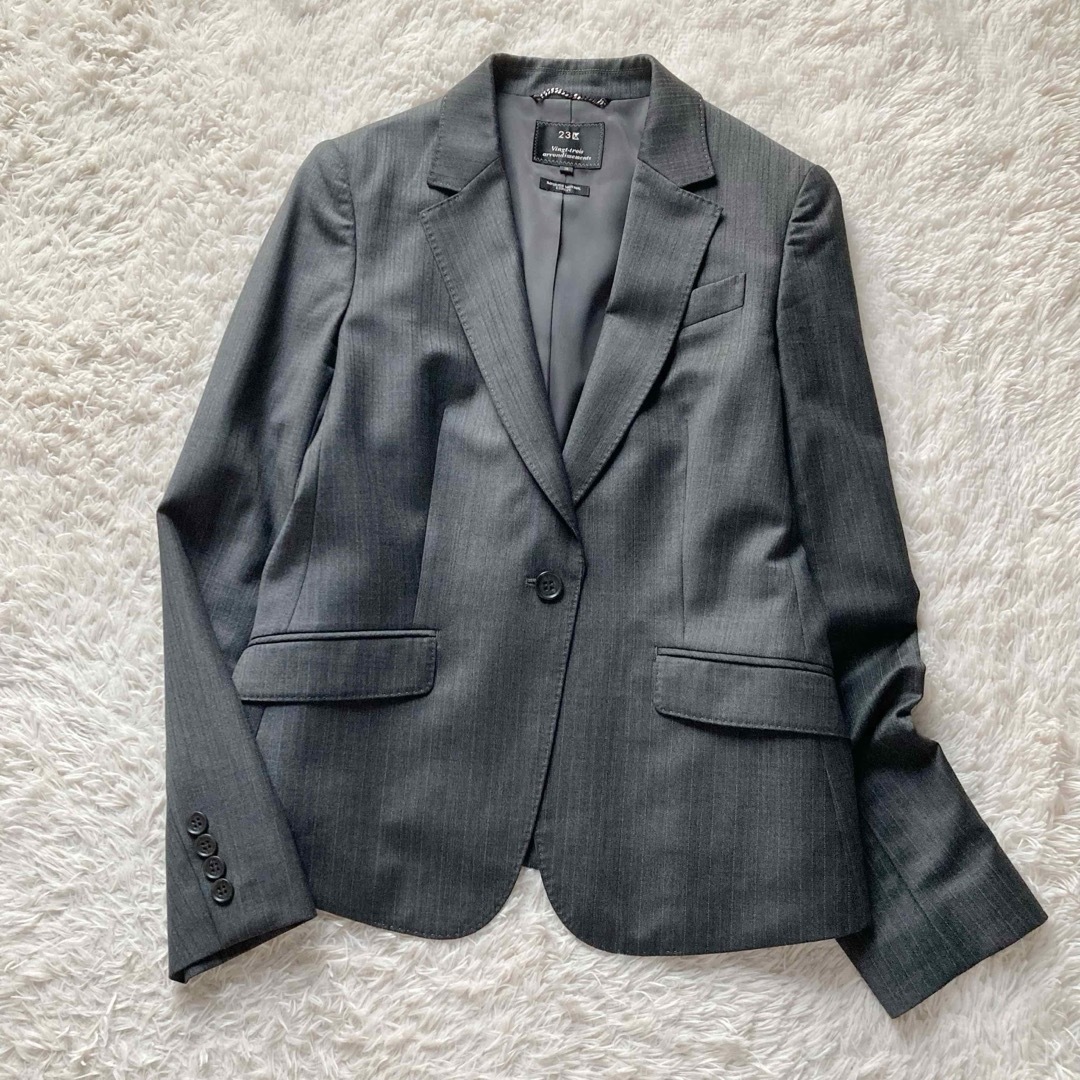 23区 オンワード樫山 パンツスーツ セットアップ 上下セット テーラードジャケット 1つボタン スラックス センタープレス ヨーロッパ製生地 ストライプ 通勤 ビジネス
