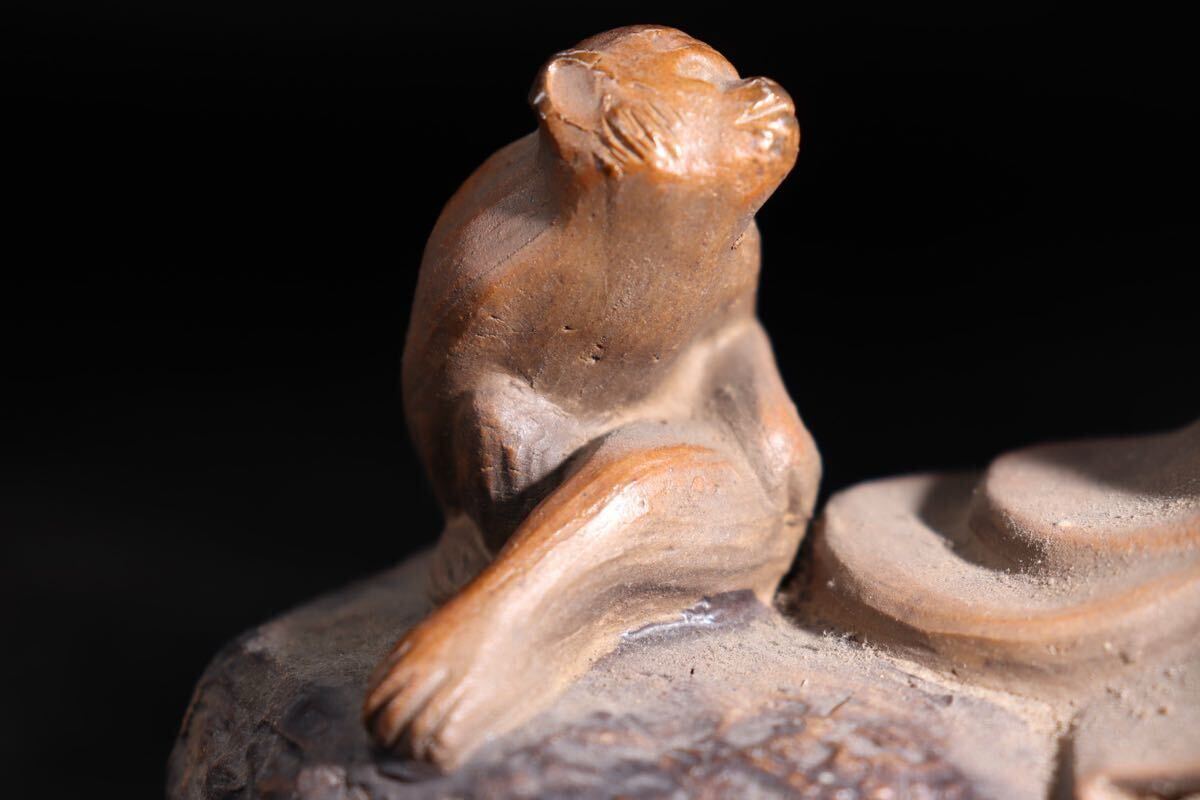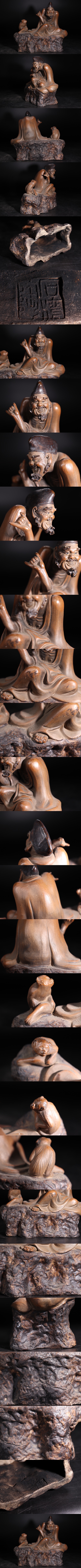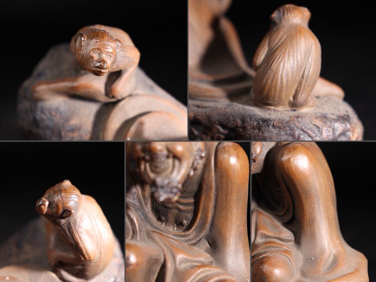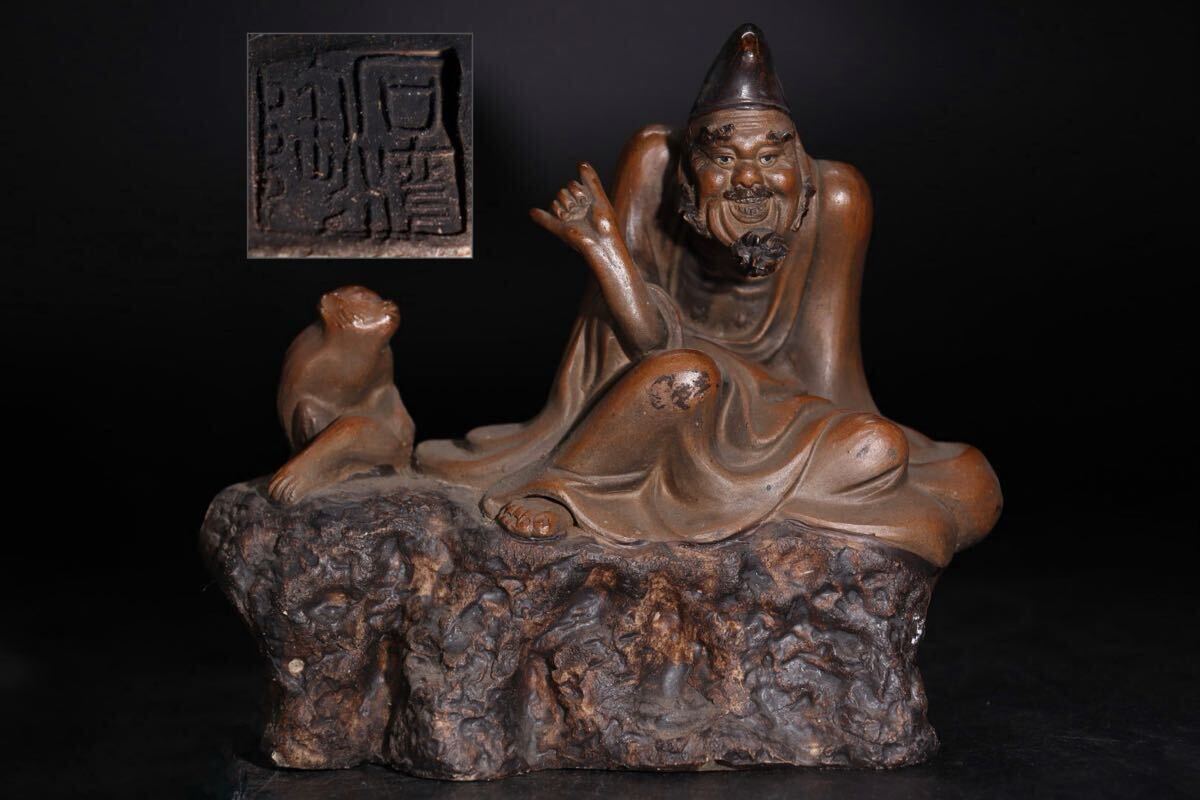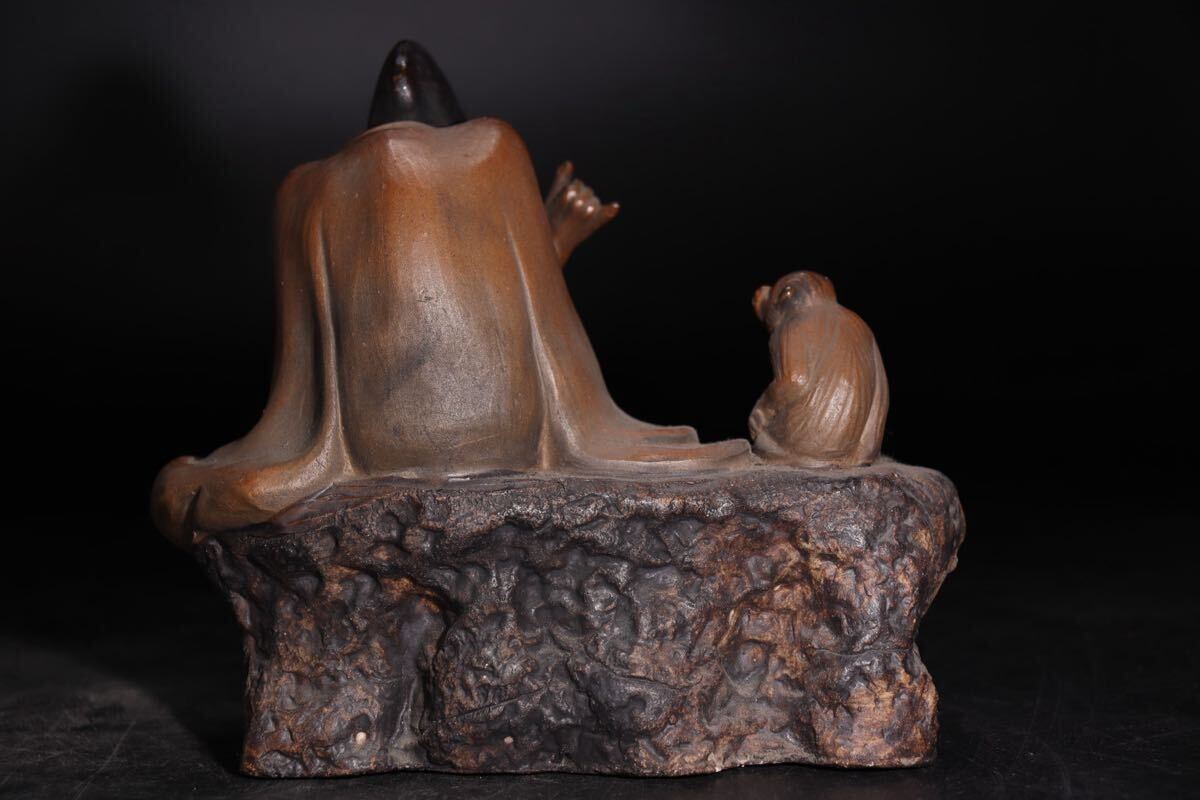 | 時代 石湾陶 款 人物 ・ 猿 置物 / 中国美術 石湾 石湾陶器 煎茶飾 .G1589 |