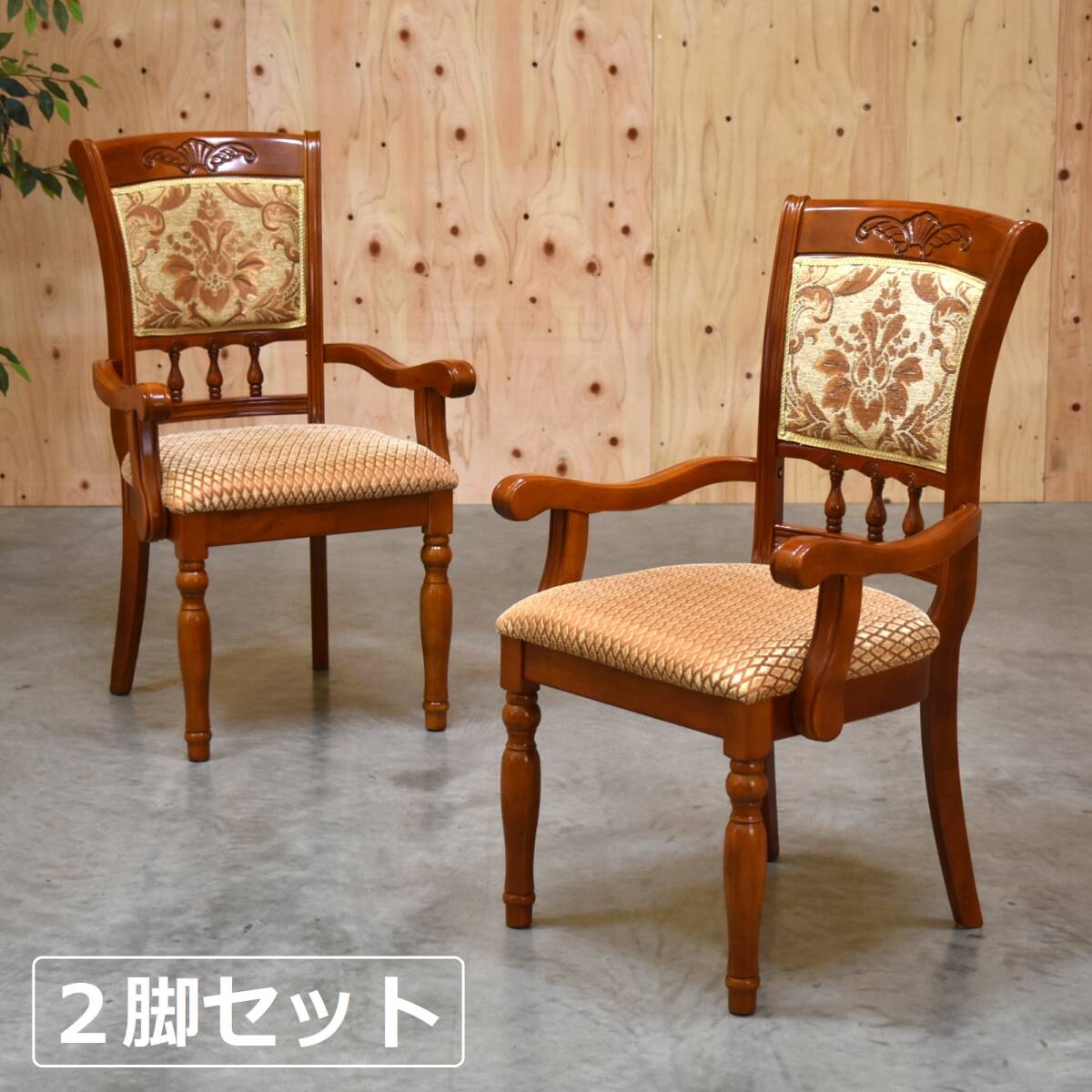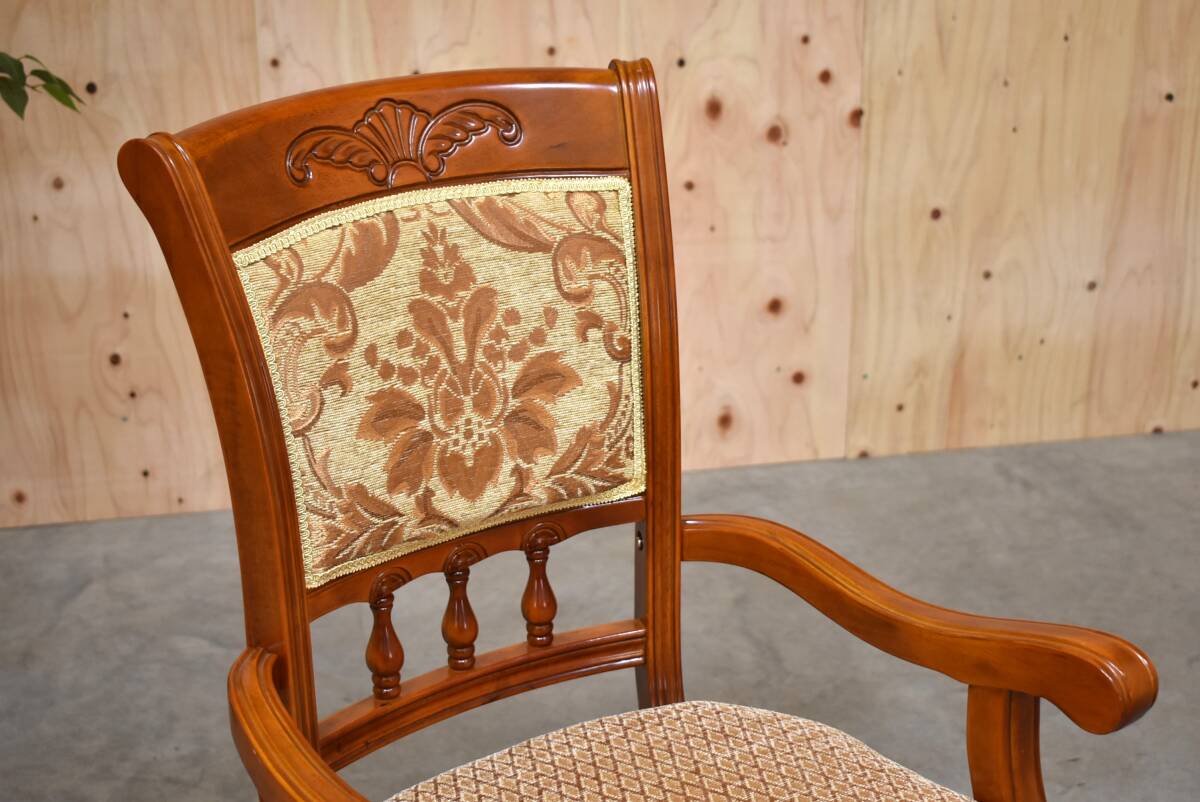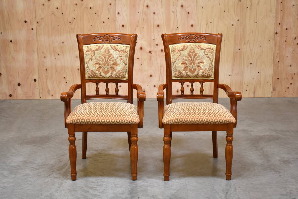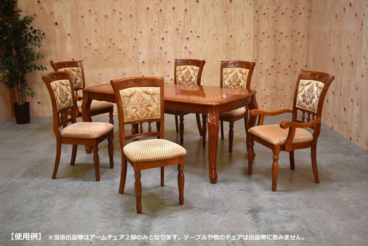 yt1919ジ [2脚セット] クラシック家具 アンティーク調 アームチェア 金華山織 ダイニング/イタリア/英国/ヨーロピアン『引取歓迎』70515-06 | |||