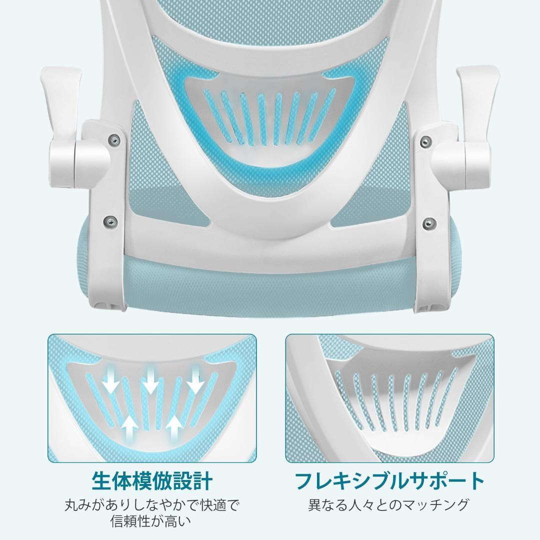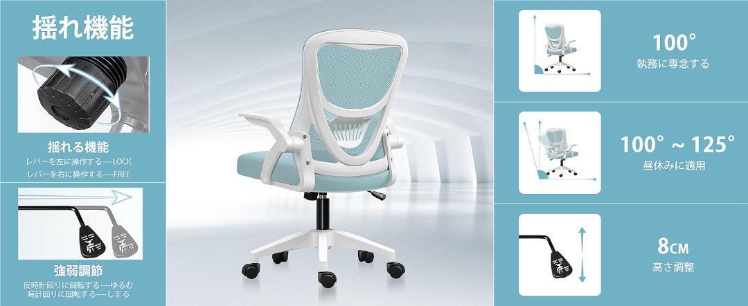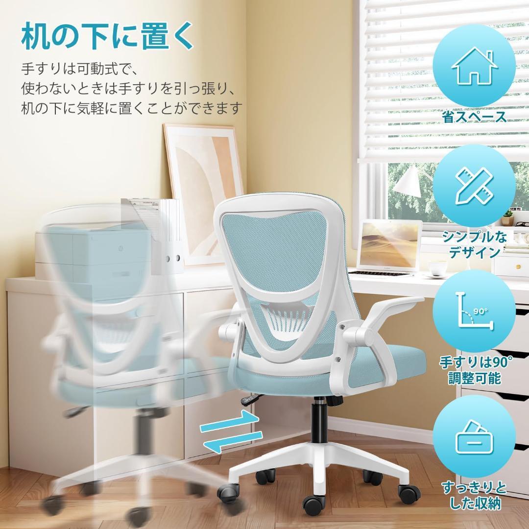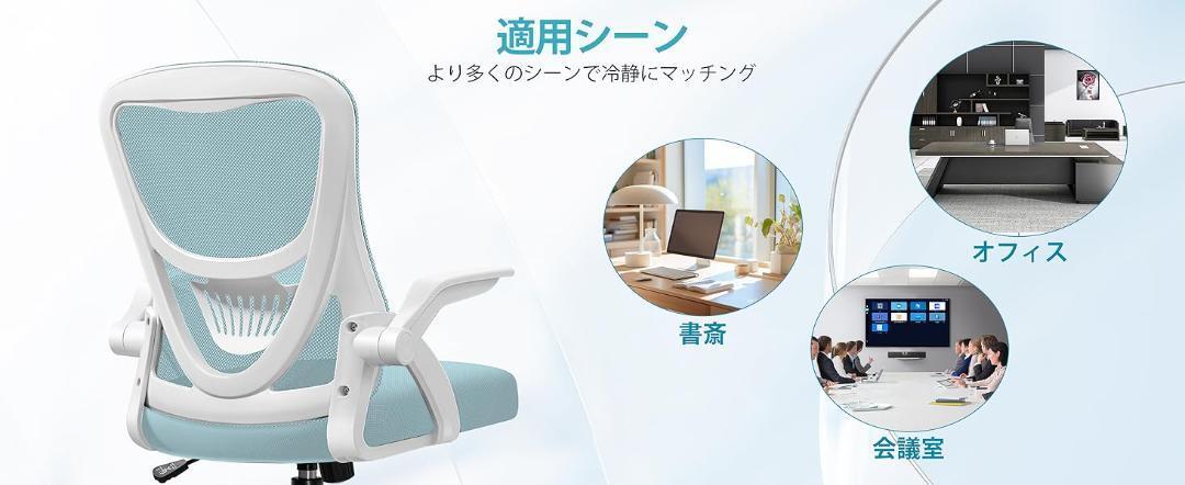 このオフィスチェアは、跳ね上げ式のアームレストを備えており、90度回転できるように設計されているため、自由に使用することができます。使わないときはアームレストを引き上げて、どのデスクの高さにもすっきりと収納できるので、部屋のスペースを有効に活用できます。部屋、書斎、オフィス、会議室、応接室など幅広く利用されています。