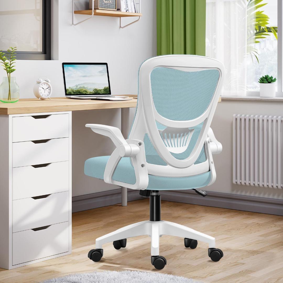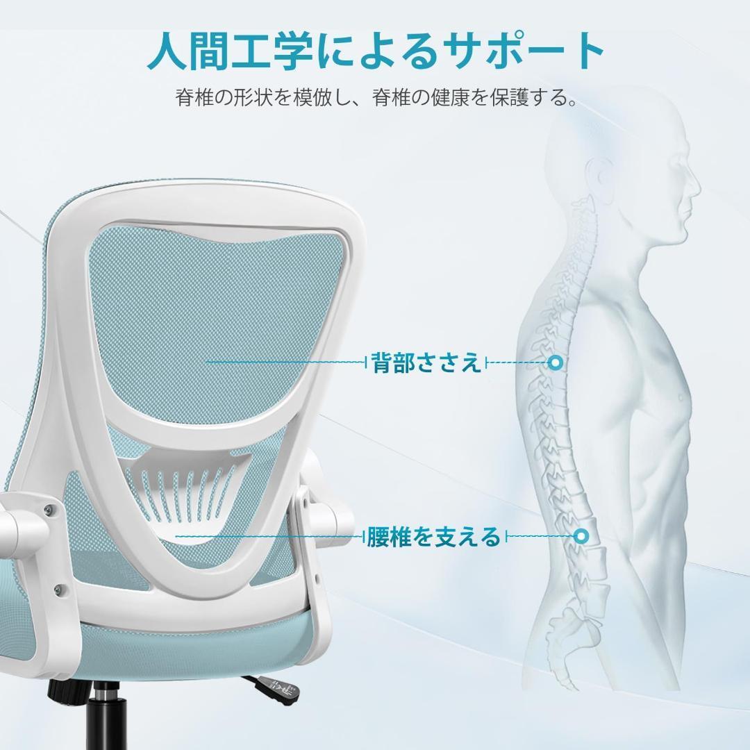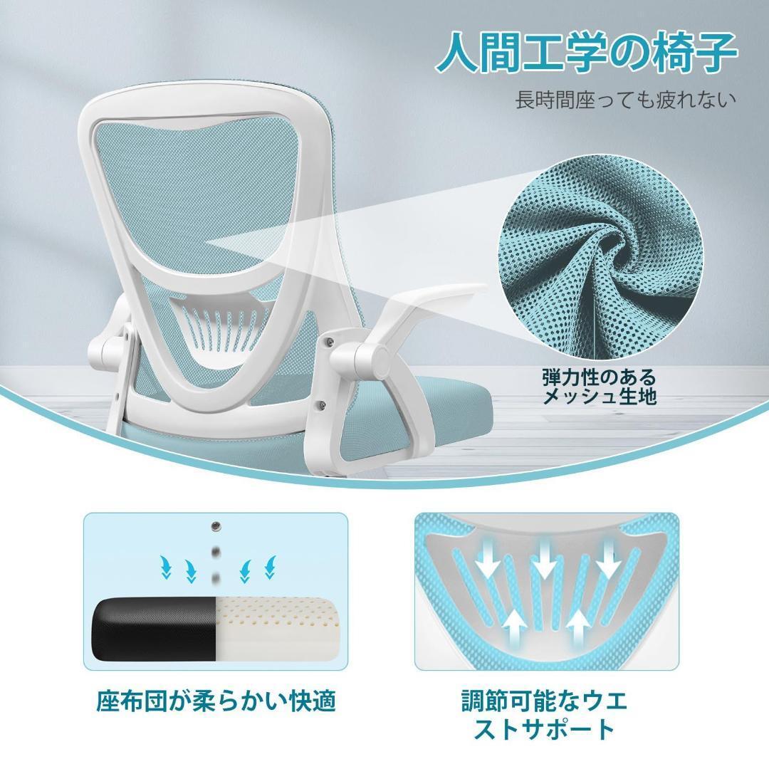 このオフィスチェアは、跳ね上げ式のアームレストを備えており、90度回転できるように設計されているため、自由に使用することができます。使わないときはアームレストを引き上げて、どのデスクの高さにもすっきりと収納できるので、部屋のスペースを有効に活用できます。部屋、書斎、オフィス、会議室、応接室など幅広く利用されています。