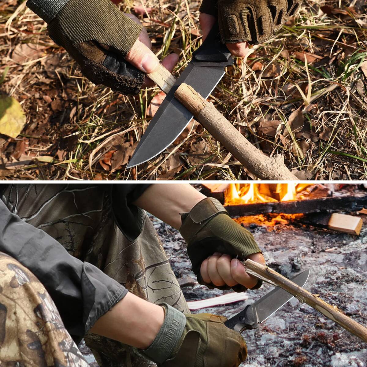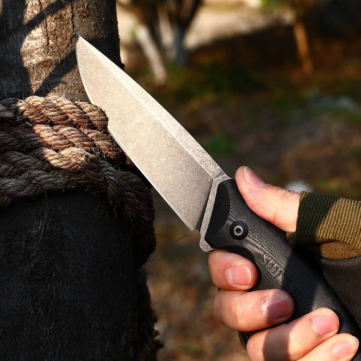 【素材&性能】:ブレードには強度良いD2鋼を採用し、硬度は62HRCに達しております。ブレードの表面には、ストーンウォッシュ処理を施しました。高い耐食性および耐摩耗性を持ち続けて、素晴らしい切れ味があります。