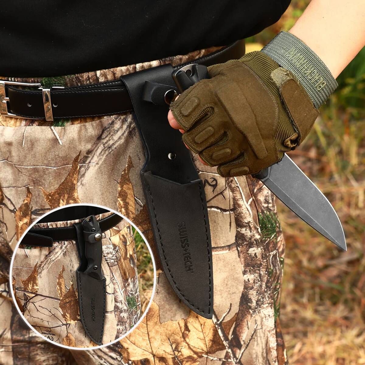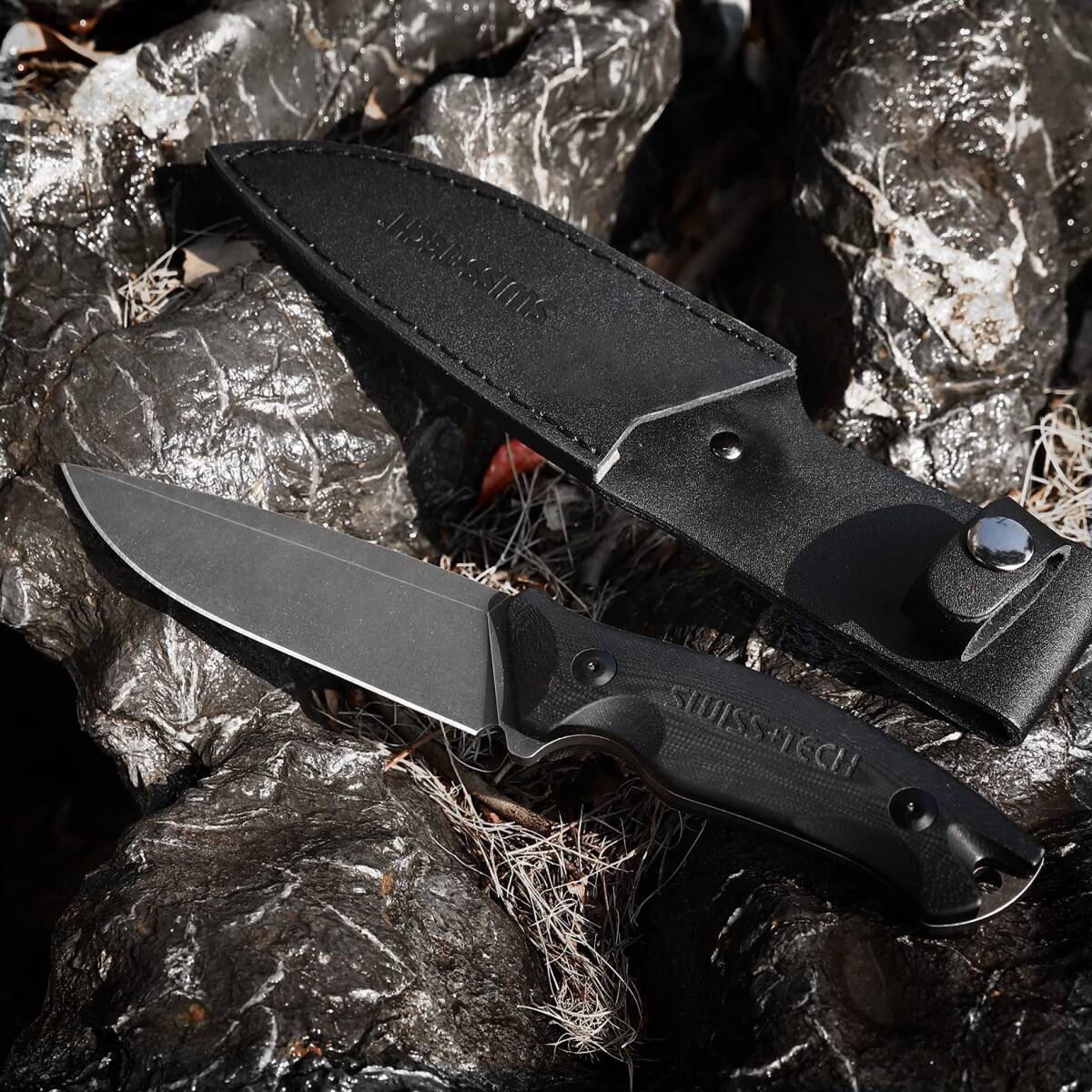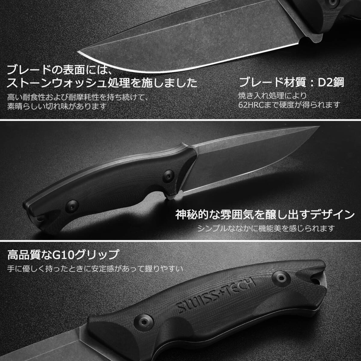 SWISS+TECH シースナイフ サバイバルナイフ D2鋼 ストーンウォッシュ G10ハンドル アウトドア