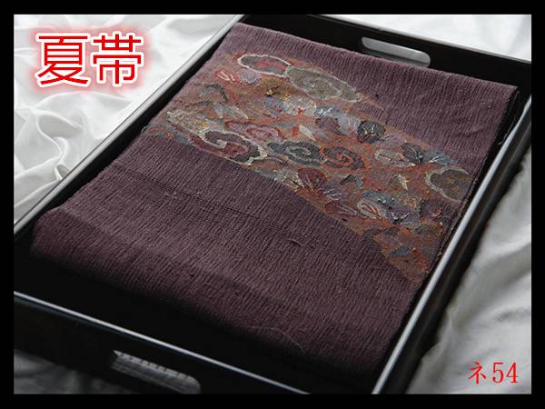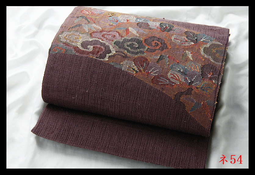 【ネ54】西陣逸品 夏帯 瑞雲紋 透かし 滅紫色地 気品豊かに 正絹高級美術名古屋帯 ◇検◇簪着物袋帯名古屋帯帯締め