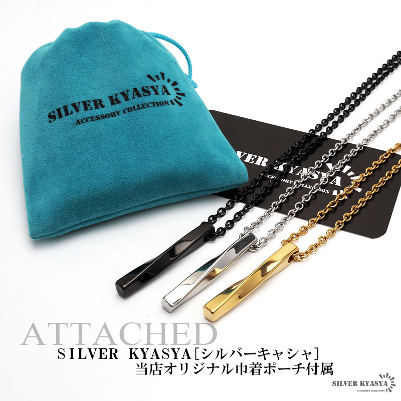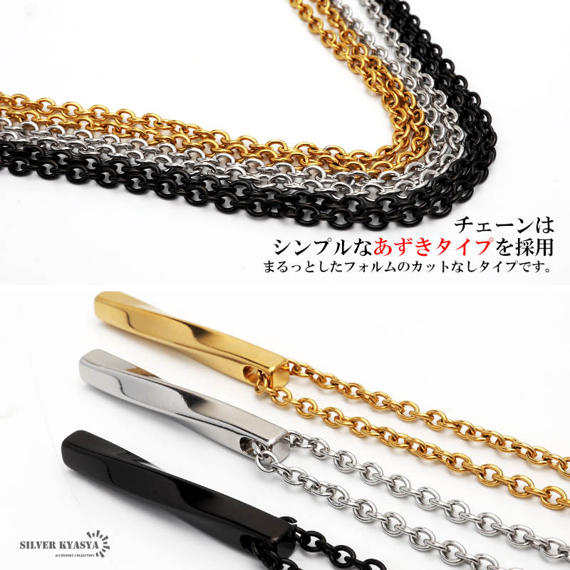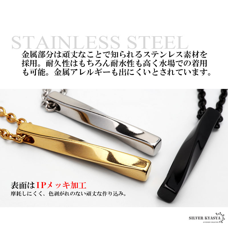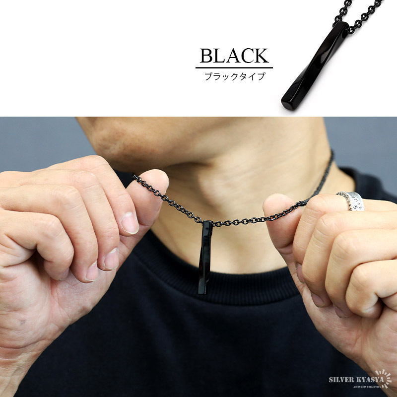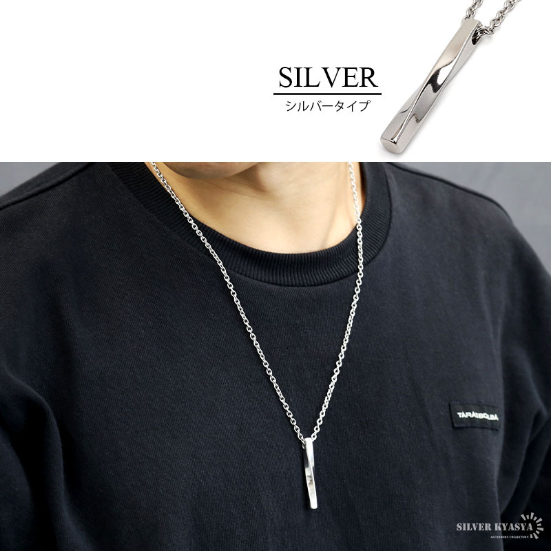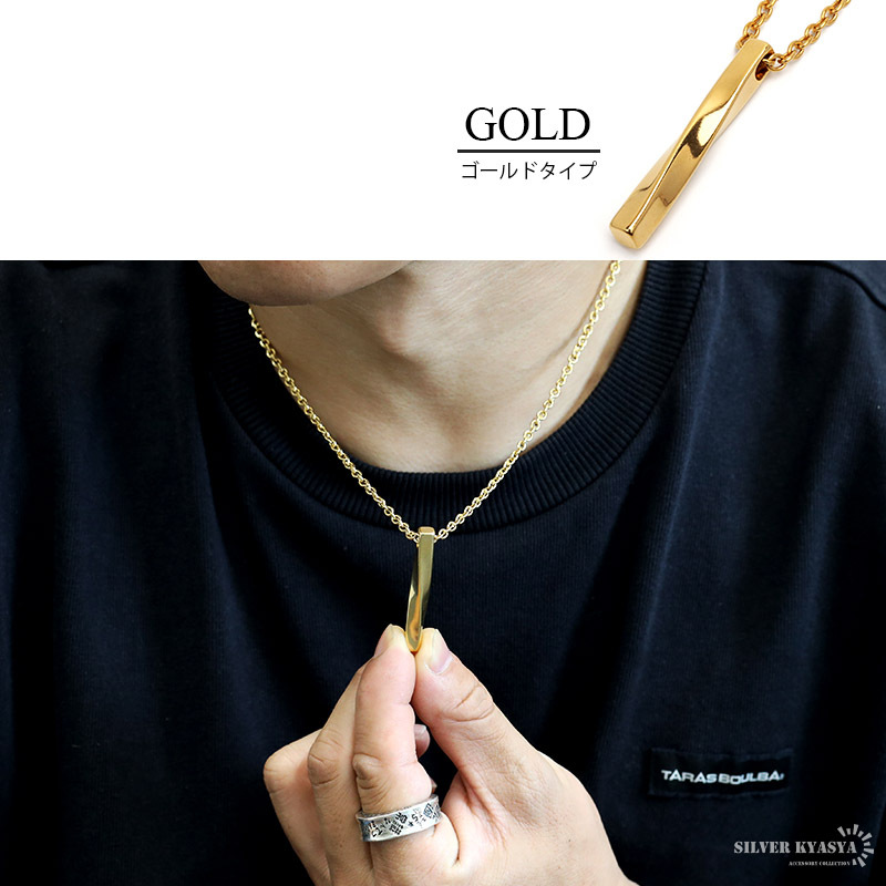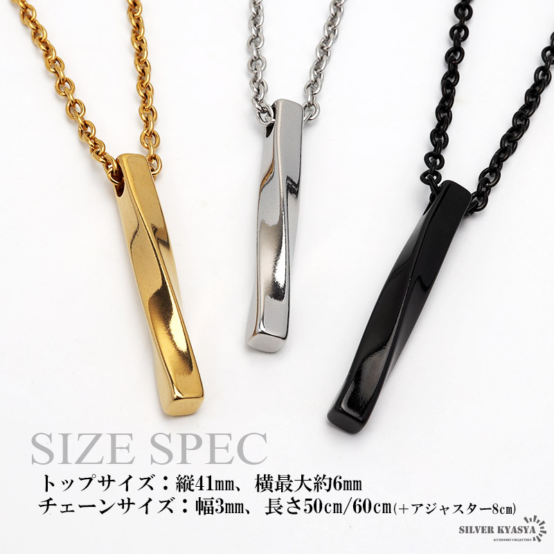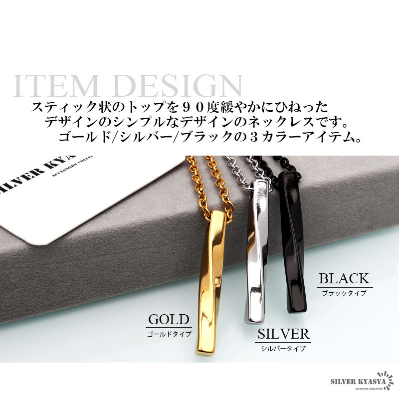 スティック状のトップを90度緩やかにひねったデザインのシンプルなデザインのネックレスです。ゴールド/シルバー/ブラックの3カラー展開。