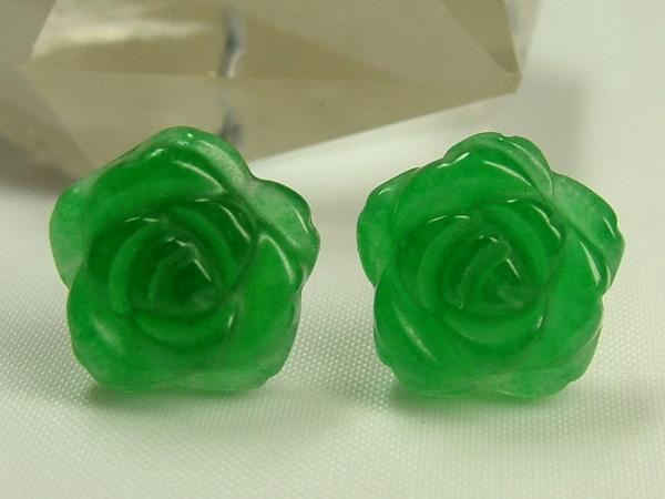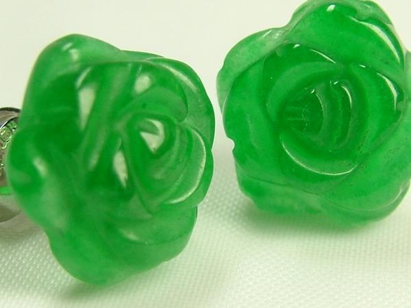 ▲▽■龍香堂■ ミャンマー翡翠 薔薇ピアス(グリーン)即決△▼ | |