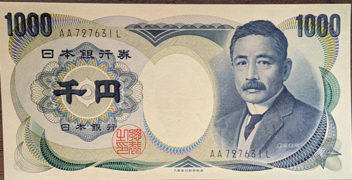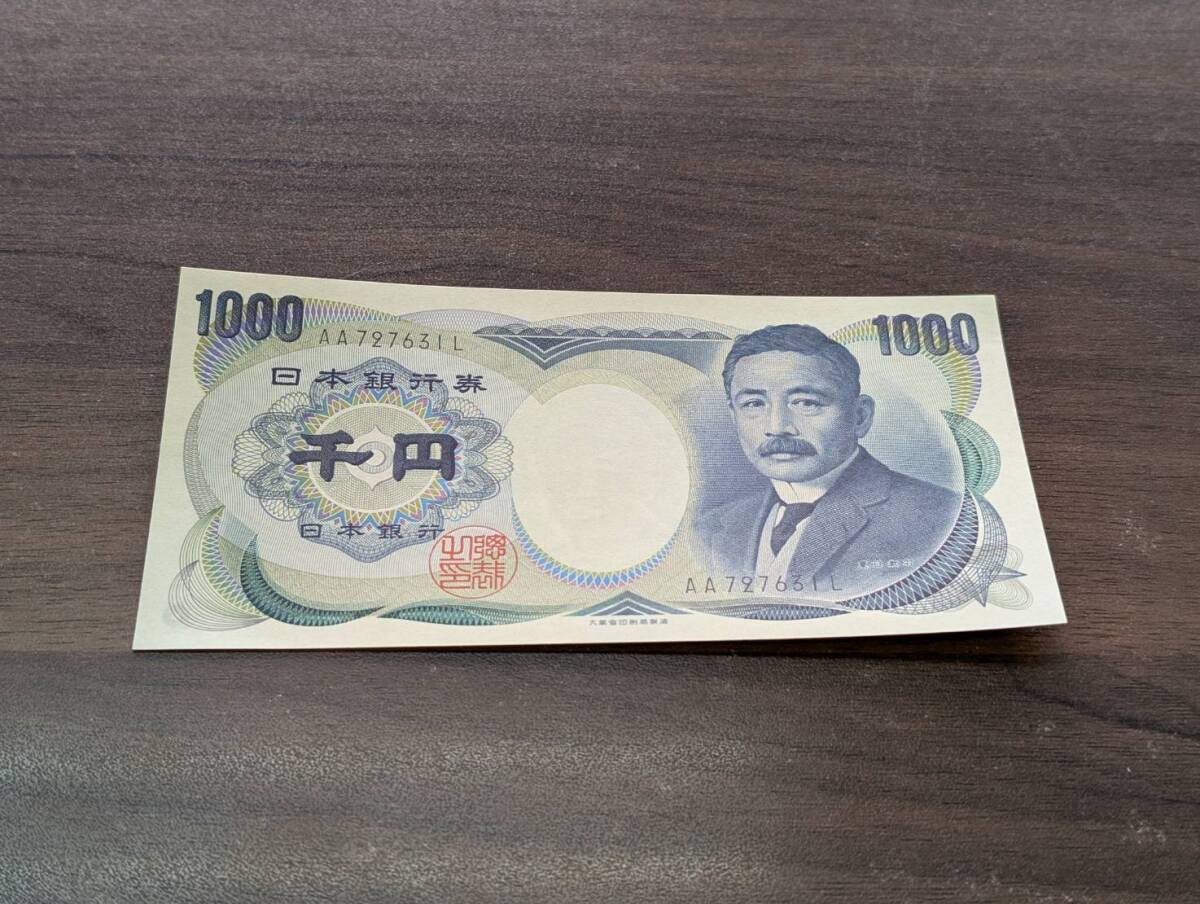 [未使用/希少] 夏目漱石 1000円札 AA727631L(大きな折り目無し/黒色/AA) 千円札 日本銀行券 古紙幣 旧紙幣 旧札 古銭 年代物 同梱可