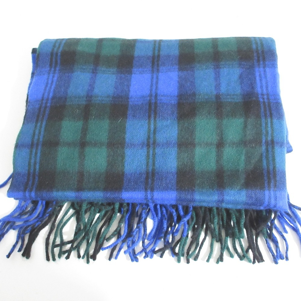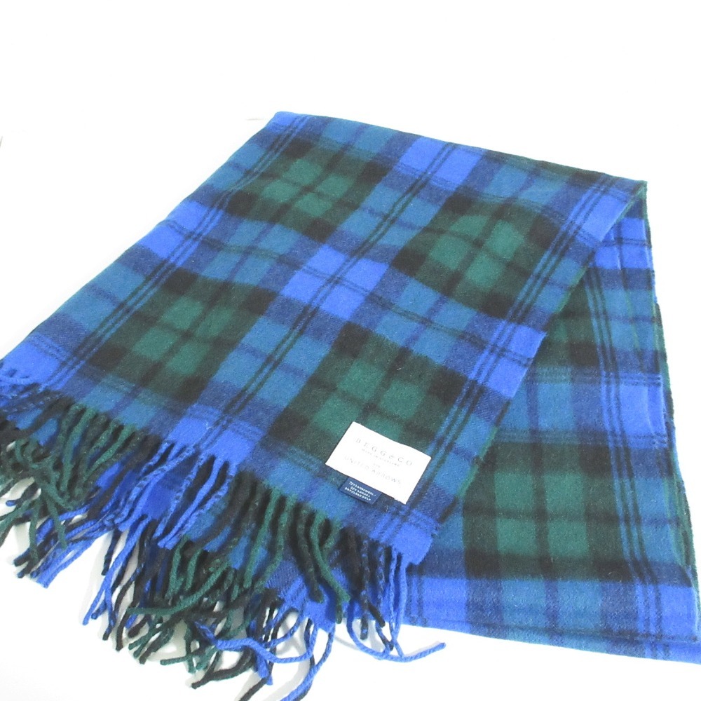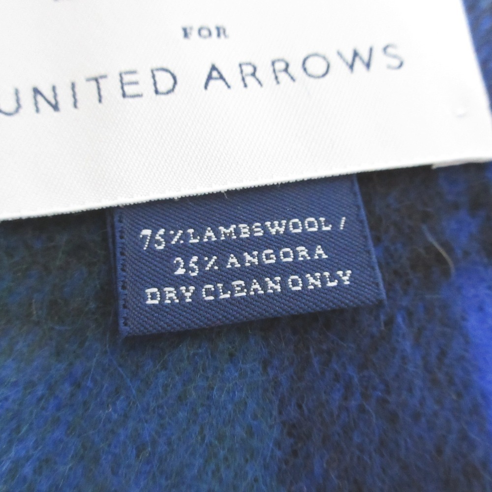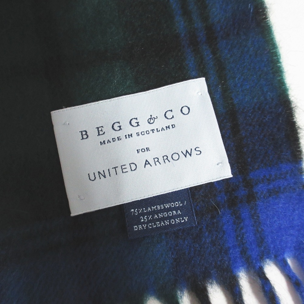 美品 BEGG&CO ベグアンドコー ユナイテッドアローズ 別注 チェック柄 アンゴラブレンドフリンジ マフラー ストール ブルー×グリーン