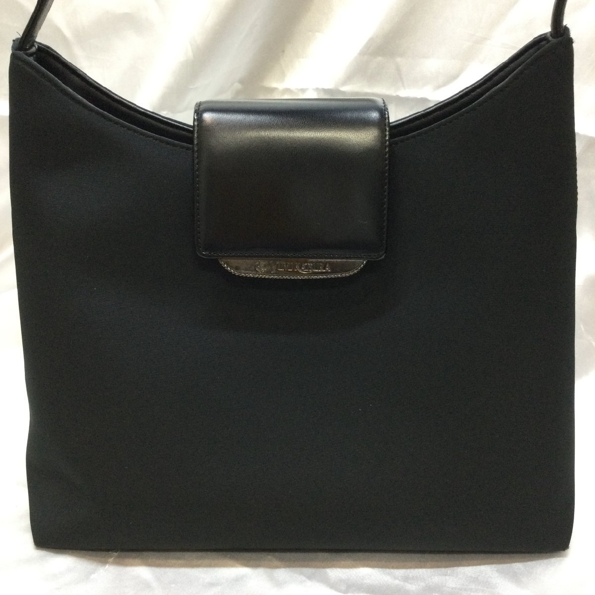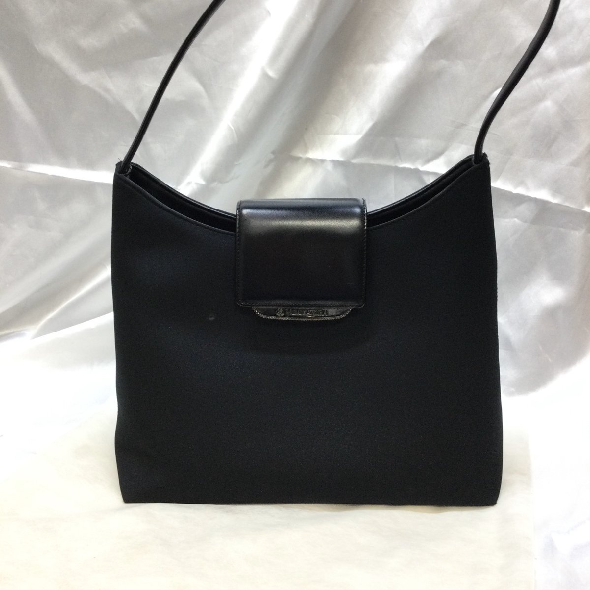 | 良品 yumi katsura ブラック ハンド バッグ フォーマル 金属 グレー&ゴールド 黒 桂由美 mila schon 冠婚葬祭 |