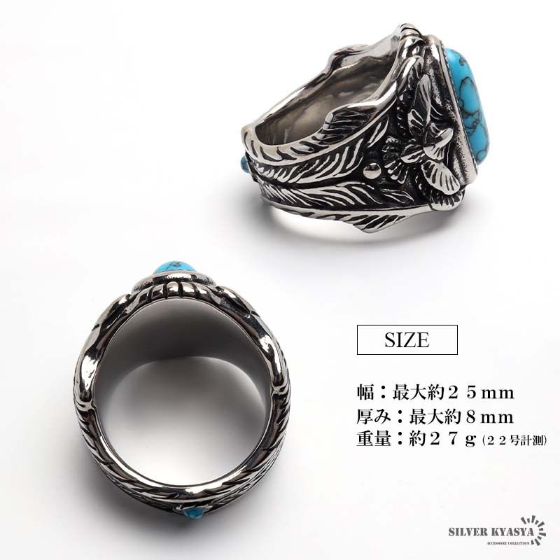 大粒のターコイズストーンをセットしたリング。繊細に刻まれたインディアン風の模様が絶品。しっかりとした存在感と重厚感のある仕上がり。