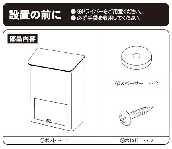 | セット内容 | ポスト×1 スペーサー×2 木ねじ×2 |