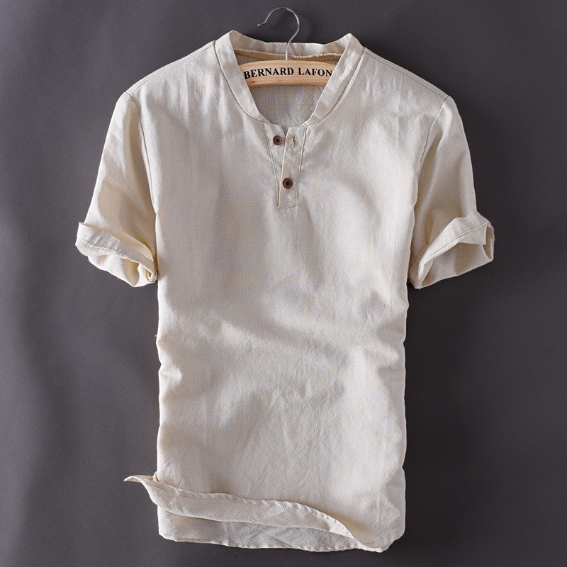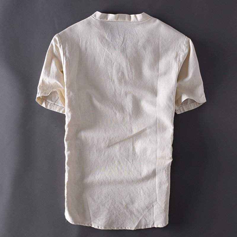 OHJ1480☆新品リネンTシャツ 半袖Tシャツ メンズ ヘンリーネック カジュアルTシャツ T-shirt 綿麻 トップス シンプル 無地 夏物 カーキ