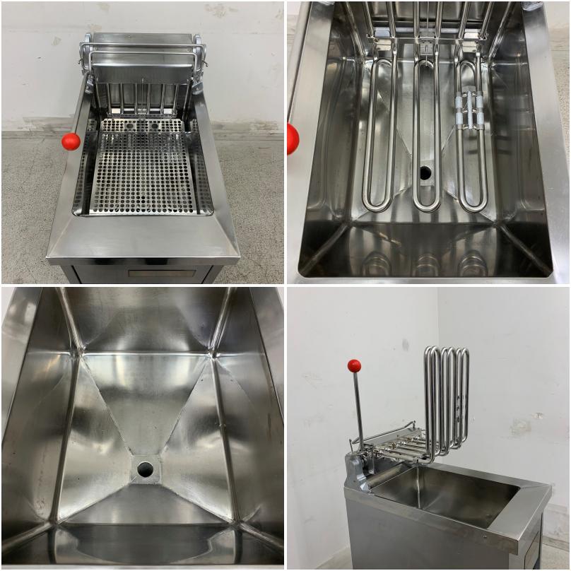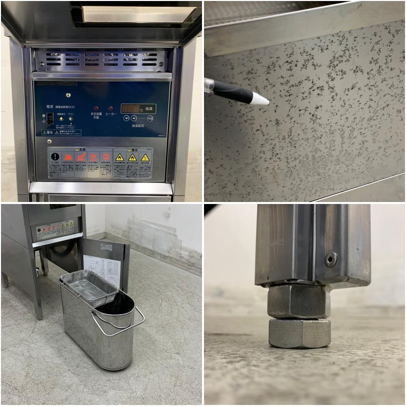 ◆備考:3相200V・電気式フライヤー、 油量:15L、 付属品:油切り網・油切り板・すべり板一体型敷き網・油缶・油こし網、 キズ・シミあり、 サビ痕多め
