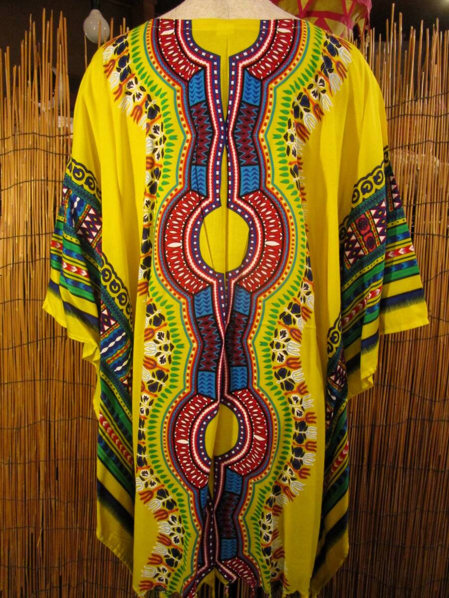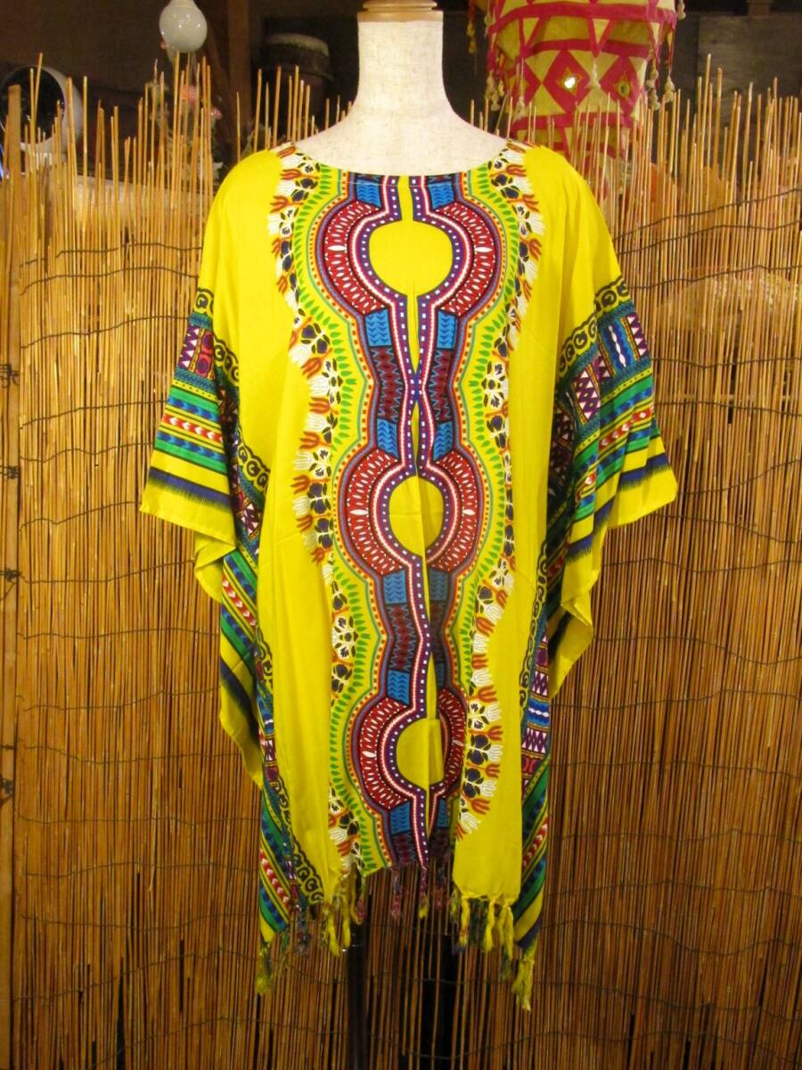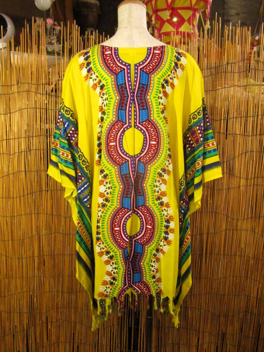 【送料込み/SALE】②新品*男女兼用*レーヨン素材*アフリカンプリント*ダシキ*ゆったりサイズ*フリンジ*ポンチョ MAJAM