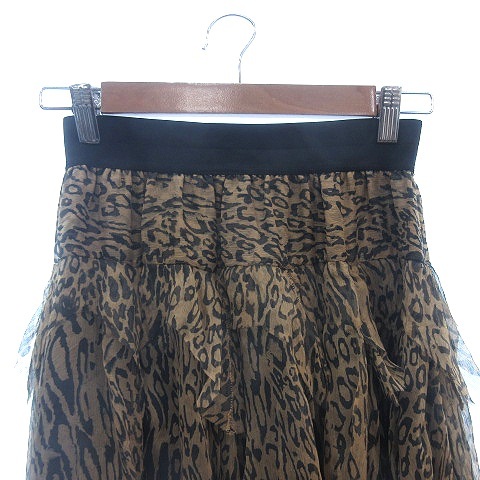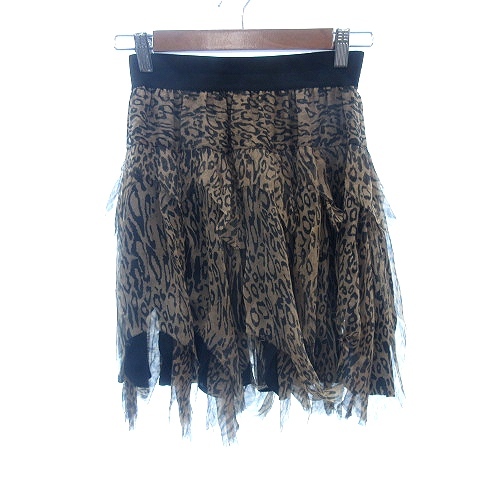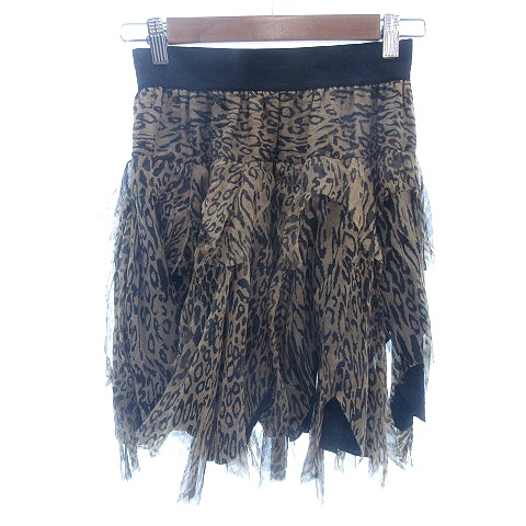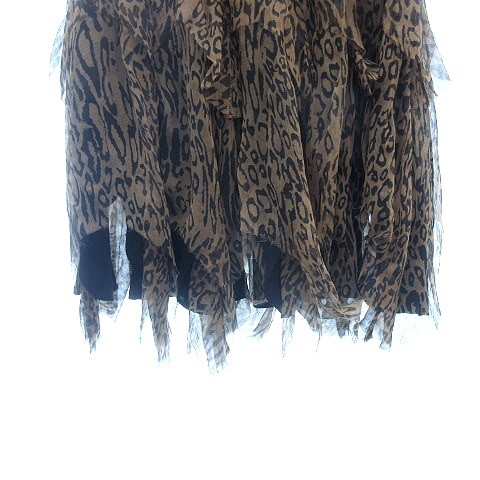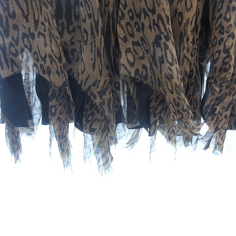 キャサリン・マランドリーノ フレアスカート ミニ ティアード アシンメトリー カットオフ レオパード ヒョウ柄 絹 0 XS ベージュ
