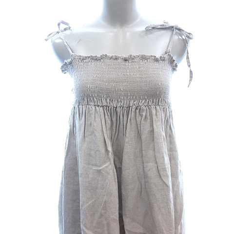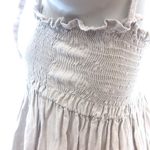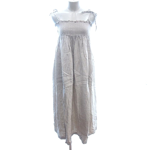 リゼッタ LISETTE キャミソールワンピース マキシ ロング リボン シャーリング 麻 リネン ベージュ /AU レディース