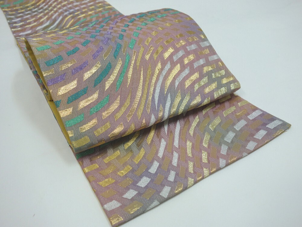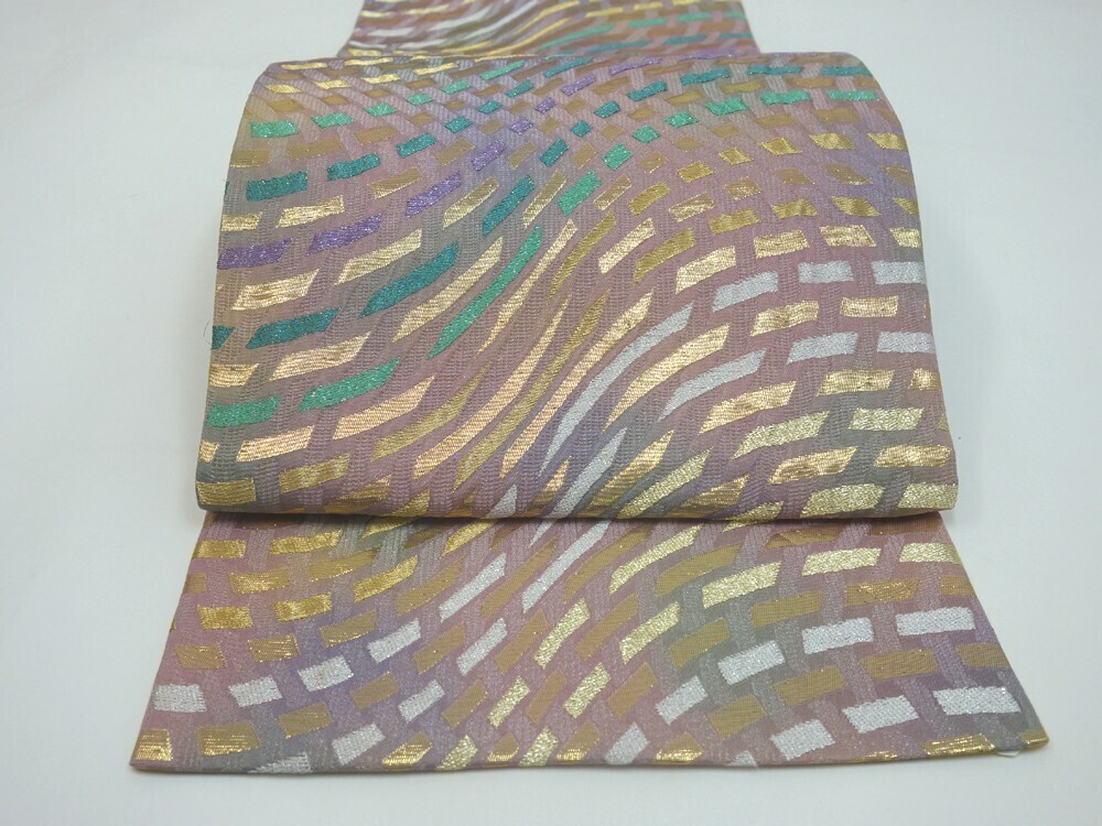 着物物語■K61022-11■中古美品 袋帯 彩 カラフル 薄ピンク系・