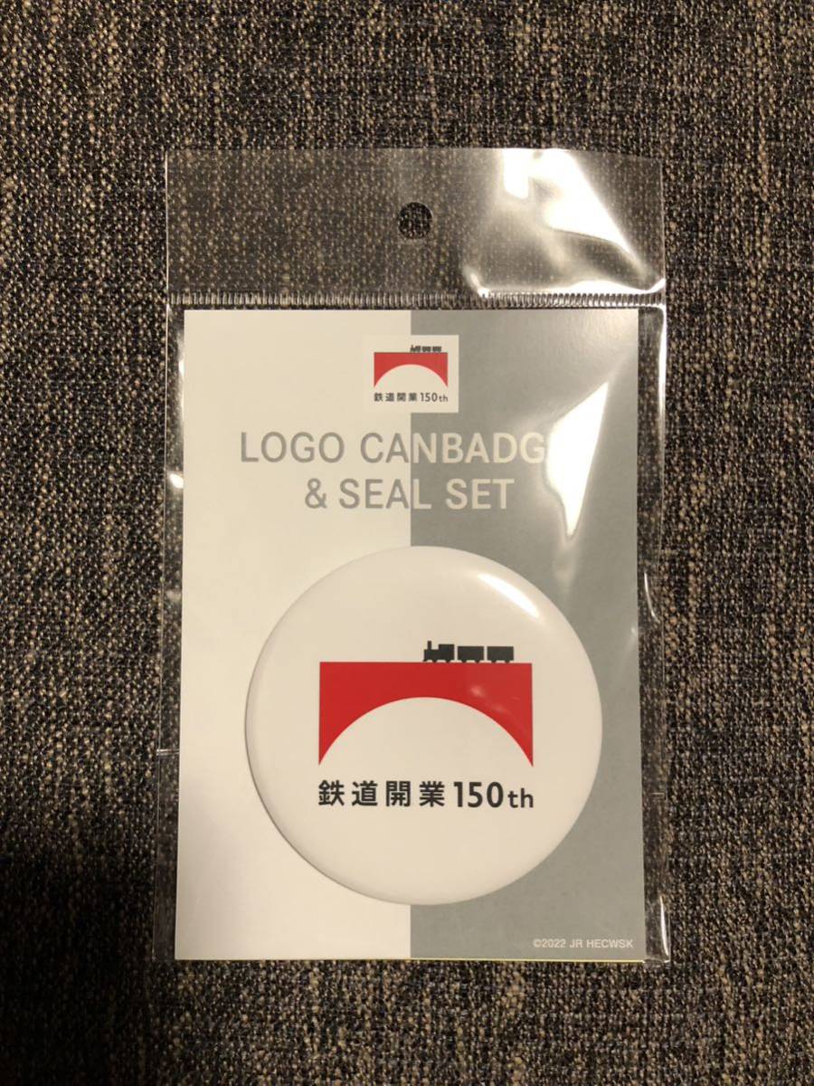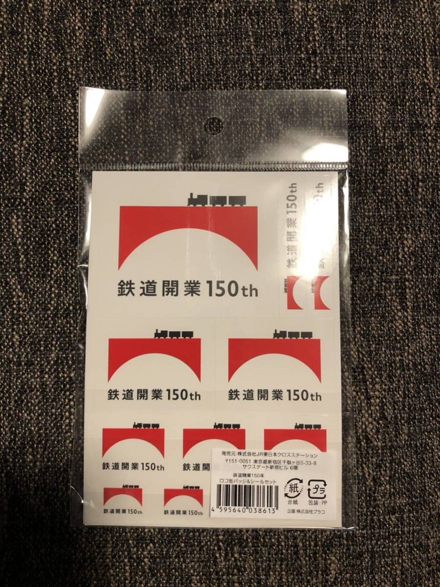 鉄道開業150年ロゴの缶バッジとシールのセットです。