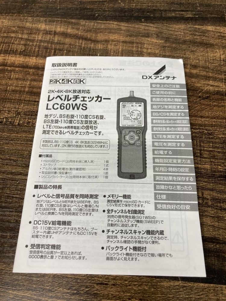 DXアンテナ ■商品名 アンテナレベルチェッカ- ■型番 LC60WS |