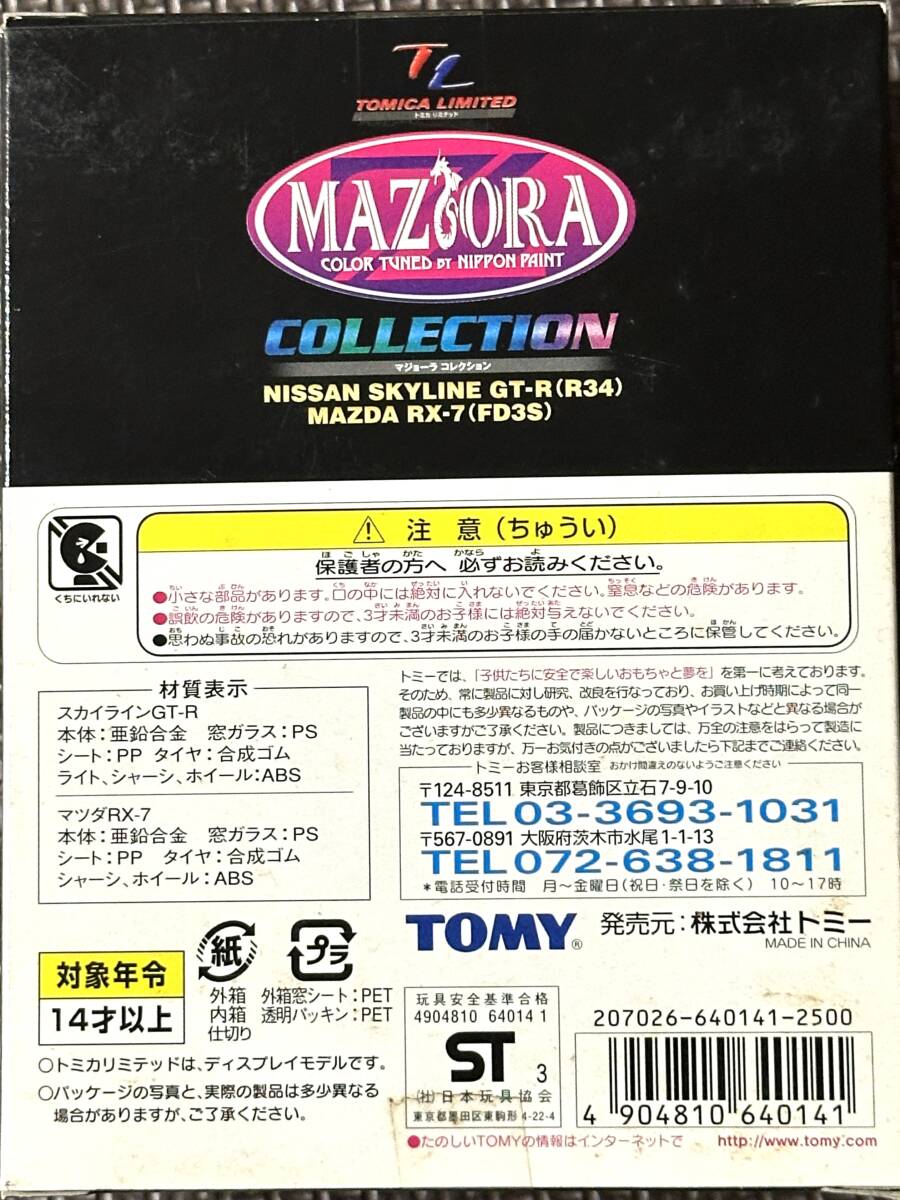トミカ  TOMICA「 マジョーラ コレクション 」日産 スカイライン GT-R (R34) & マツダ RX-7 (FD35) 2台セット ヴィンテージ 希少 絶版 当時物 新品未使用 未開封品
