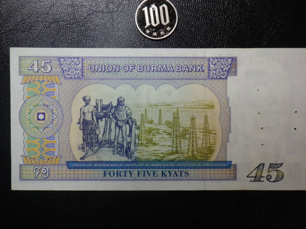 ビルマ・ミャンマー 珍額面 45Kyat 準未使用+ p-64 (ピン穴6ケ所)