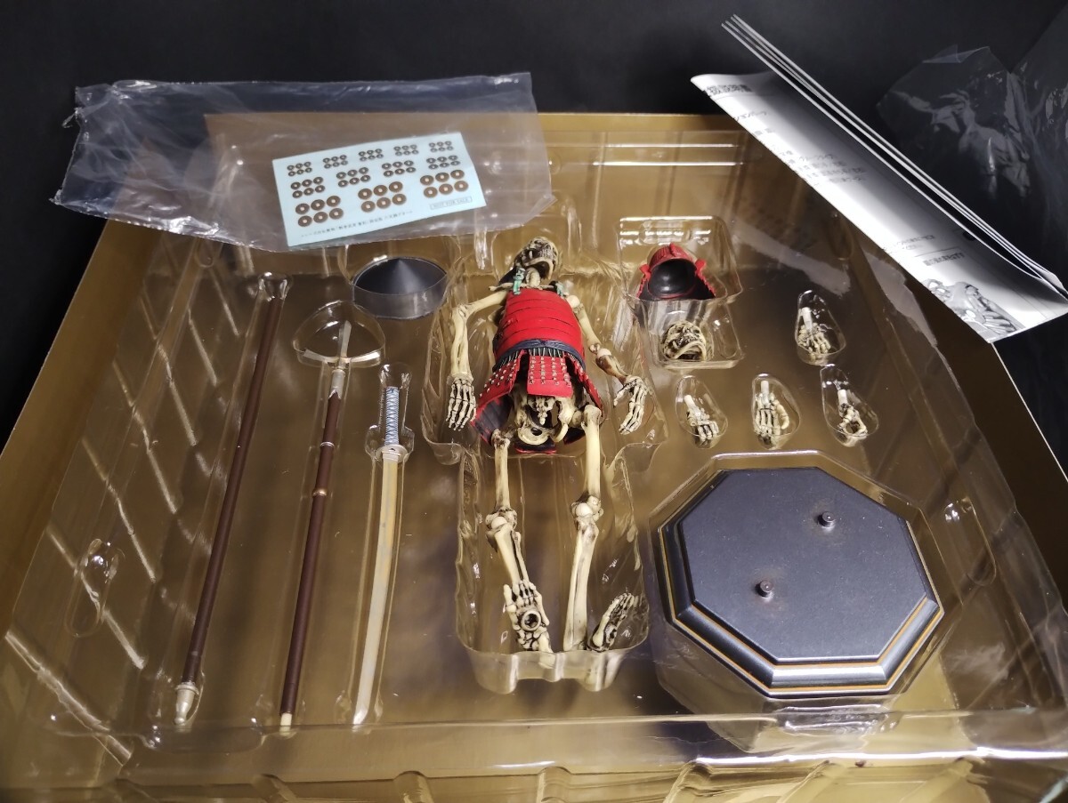パッケージ(箱)・説明書・オプションパーツ・特典の六文銭デカール(※経年により貼りにくい恐れがあります。)揃っております。