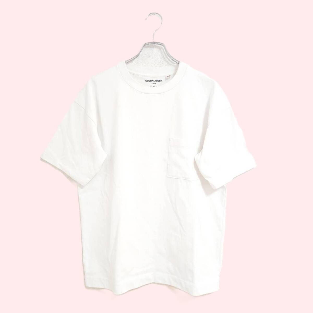 GLOBAL WORK 半袖Tシャツ 白 ポケット付き クルーネック L 薄手